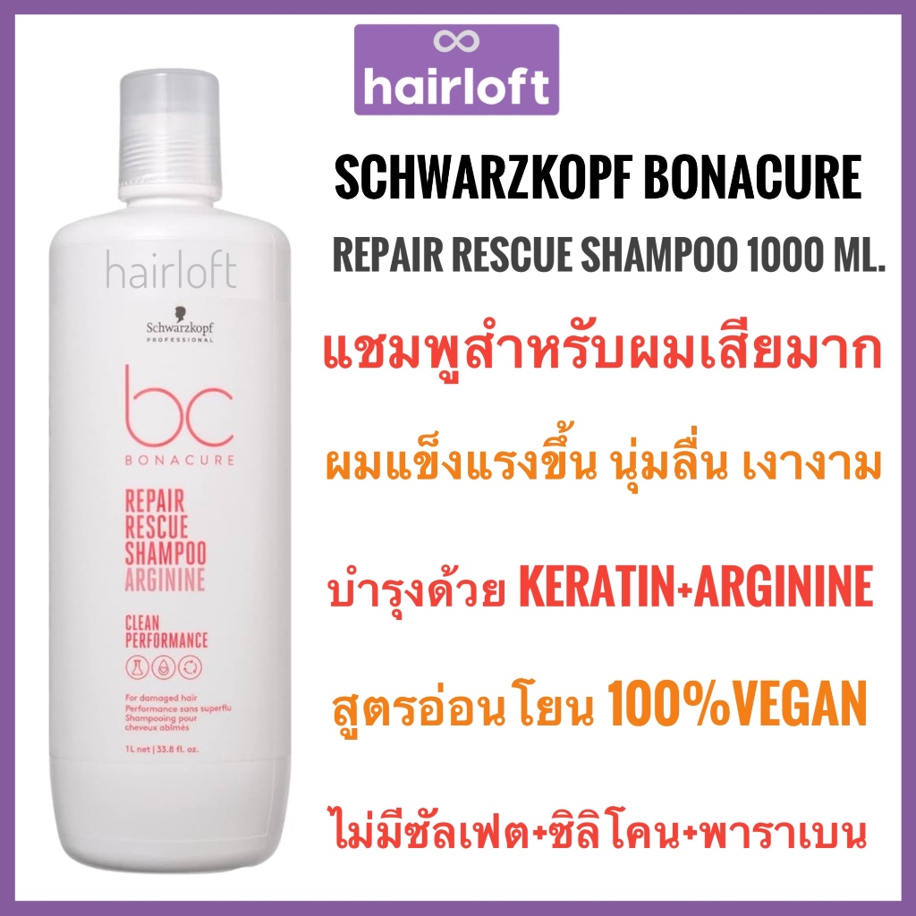 แถมหัวปั๊ม ชวาร์สคอฟ โบนาเคียว แชมพูสำหรับผมแห้งเสียมาก Schwarzkopf Bonacure Repair Rescue Shampoo Arginine 1000ml.