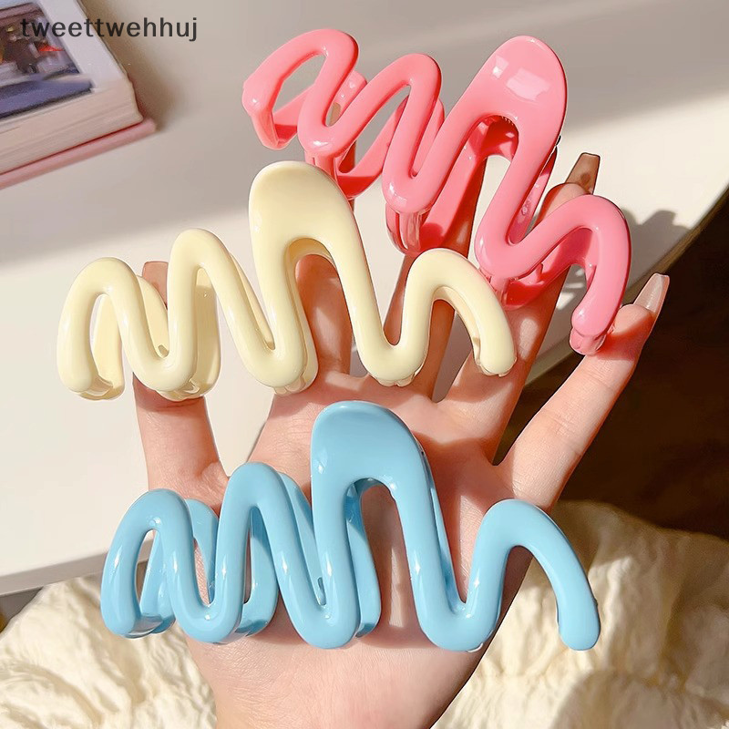 Tw Dopamine สีครีมเรขาคณิต Wave Line กลับผม Claw ผม Claw คลิปผู้หญิงสาว Hairpin หางม้าอุปกรณ์เสริมผมเครื่องประดับ huj