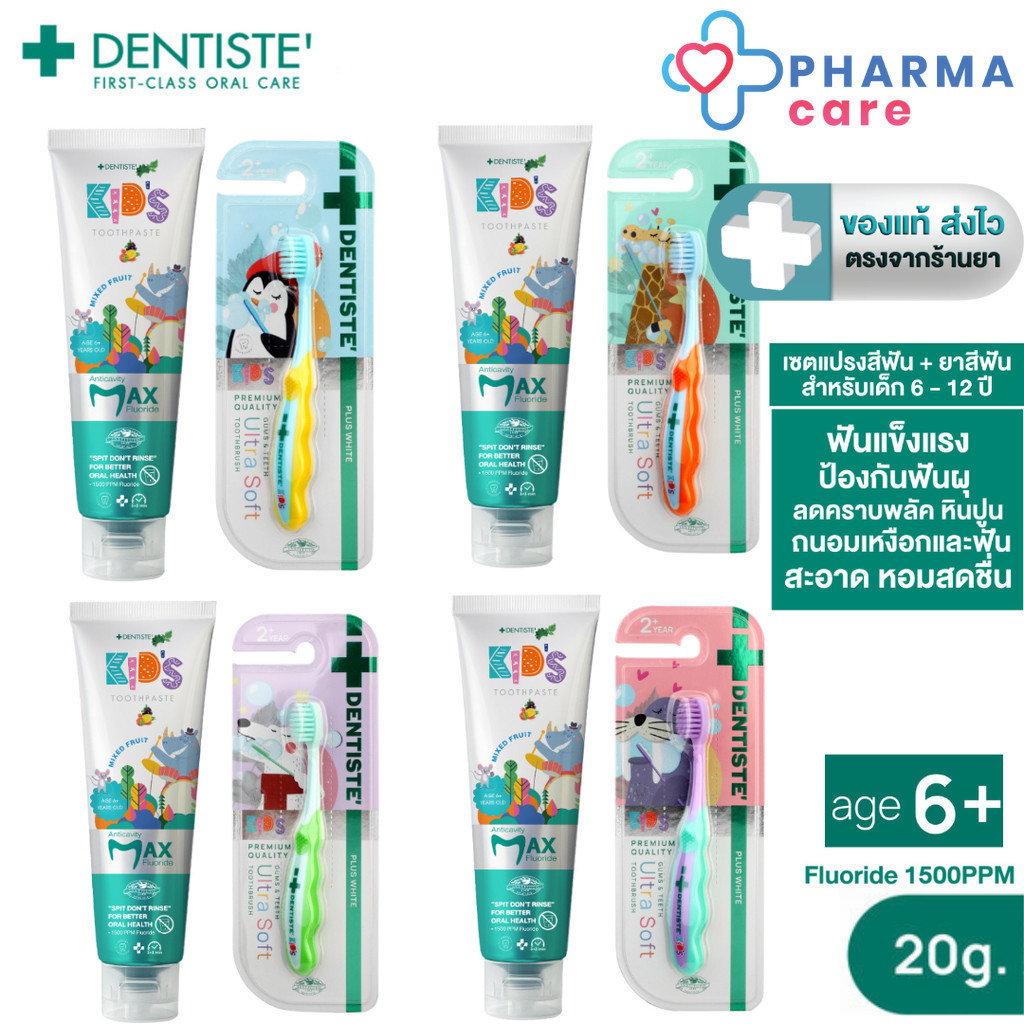 [Set] Dentiste ยาสีฟันเดนทิสเต้เด็ก อายุ 6-12 ปี กลิ่นผลไม้รวม ฟลูออไรด์ 1500 PPM / 20 กรัม + แปรงรุ่นUltra soft [PC]