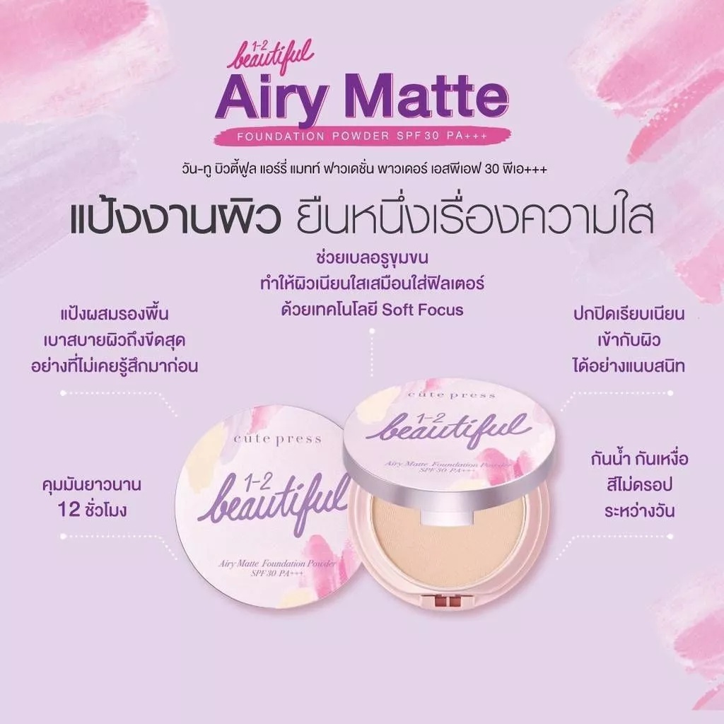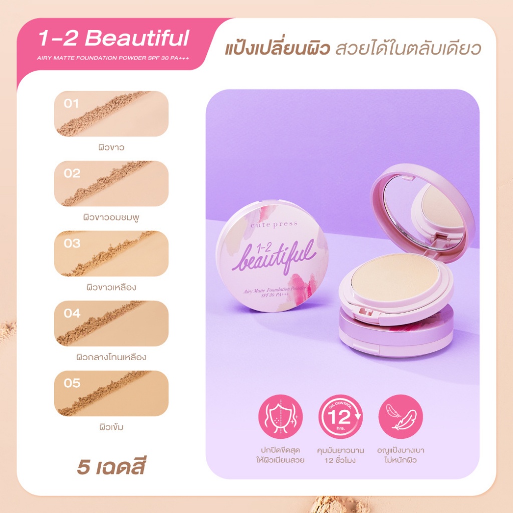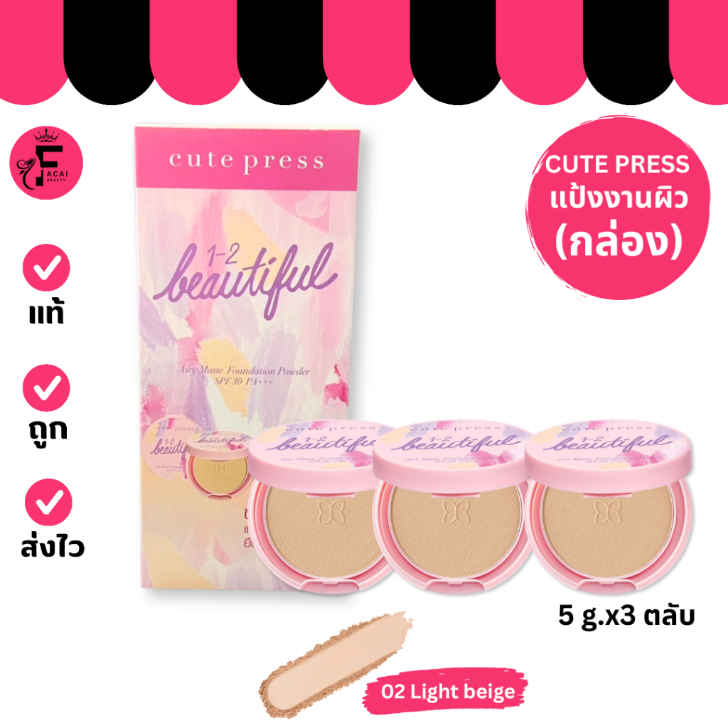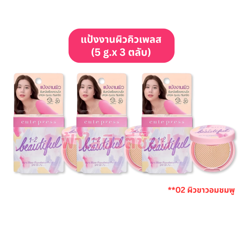 (กล่อง 3 ตลับ) CUTE PRESS แป้งผสมรองพื้นงานผิว 1-2 SPF 30 PA+++ไซส์มินิ กันน้ำ กันเหงื่อ (ขนาด 5 g.)