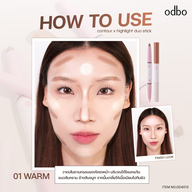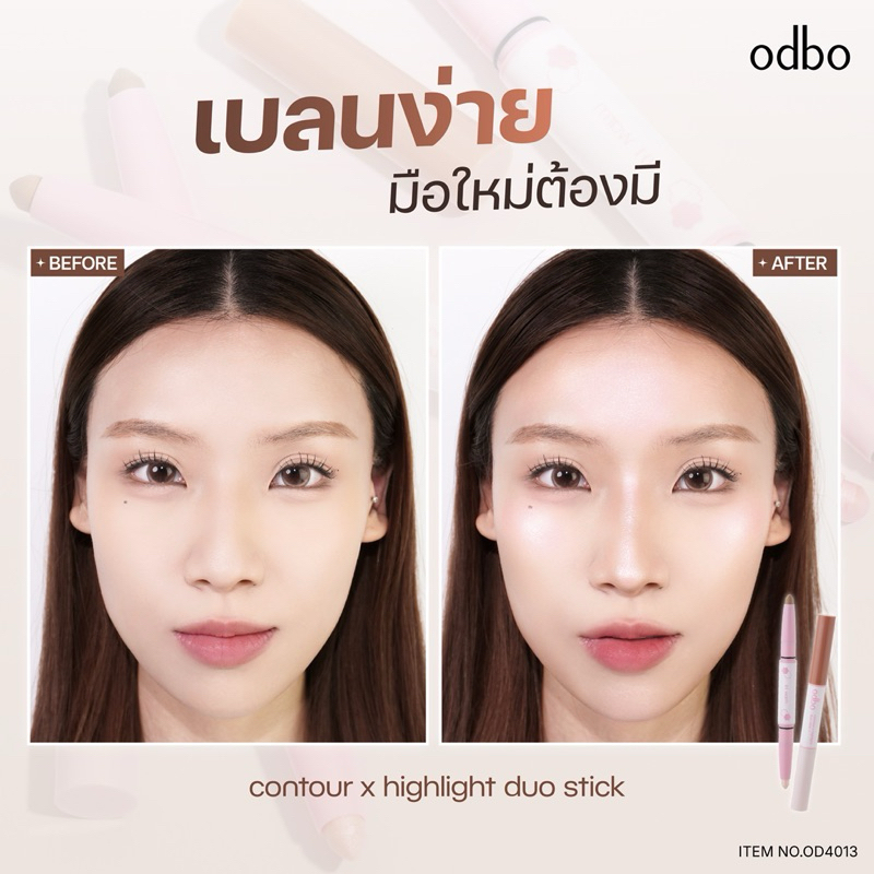 Odbo Contour x Highlight Duo Stick โอดีบีโอ คอนทรัว ไฮไล ท์ ดูโอ้สติ๊ก กรอบหน้าชัดในแท่งเดียว OD4013