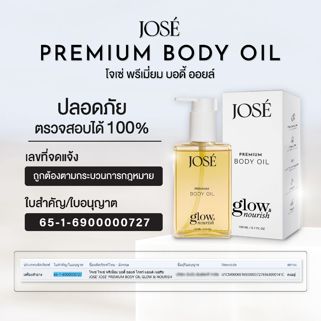 [บริษัทโดยตรง] - JOSE White Plus Body Cream & JOSE Premium Body Oil ครีมโจเซ่ ไวท์ พลัส 1 โจเซ่ พรีเมียม บอดี้ ออยล์ 1
