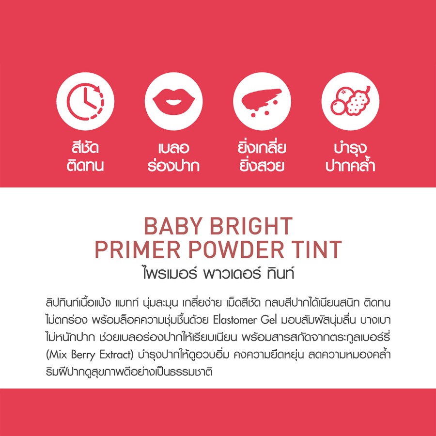 เบบี้ไบร์ท ติ้นทาปาก ลิปทินท์ เนื้อแมท เนื้อแป้ง ติดทน 2.4g Baby Bright Primer Powder Tint