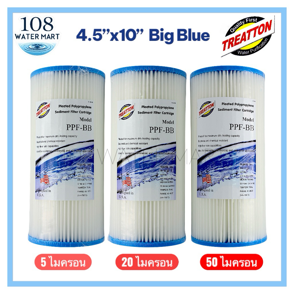 ไส้กรอง แบบจีบ บิ๊กบลู ( ไส้จีบ ) ขนาด 10 นิ้ว Treatton ฺBig Blue มีแบบ 5 ไมครอน , 20 ไมครอน , 50 ไมครอน