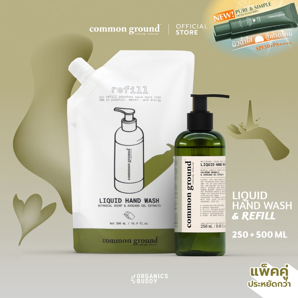 [แพคคู่] Common Ground Liquid Hand Wash เจลล้างมือ Avocado Oil Extracts กลิ่น Magnolia (250+500ml)