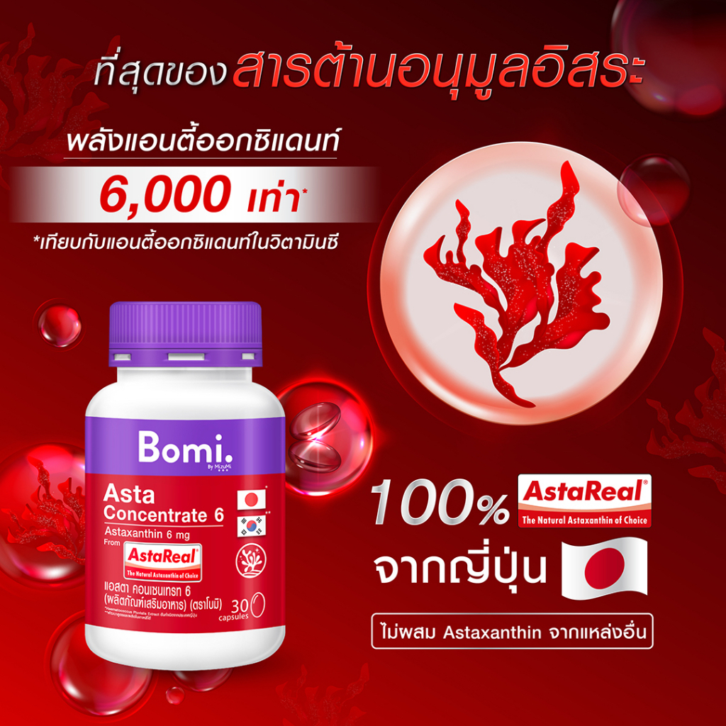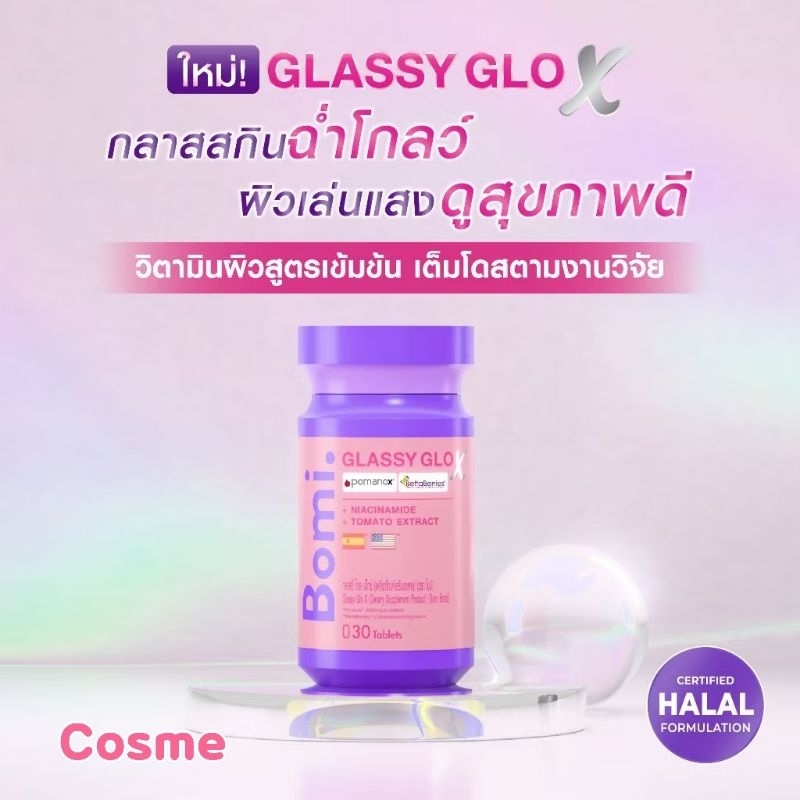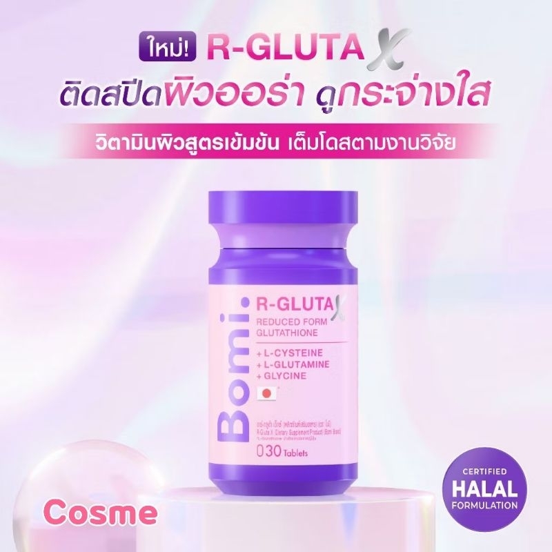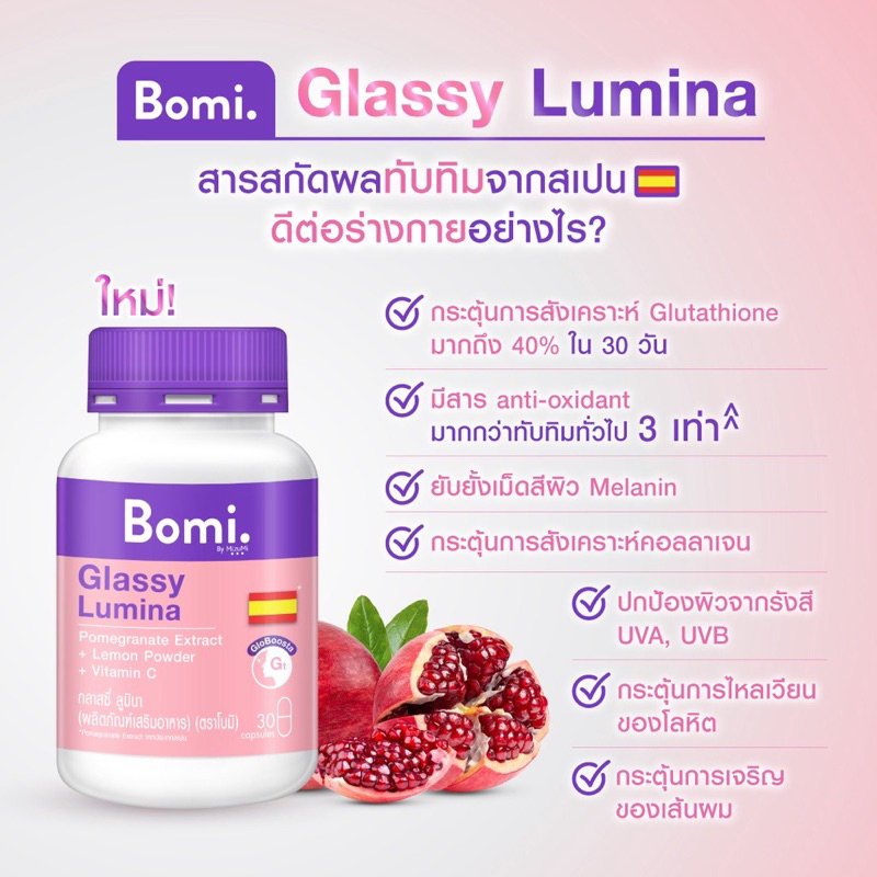 Bomi โบมิ 1 กระปุก มีสูตร Gluta , Glassy , Acna , Asta และAqua (30 Capsules)