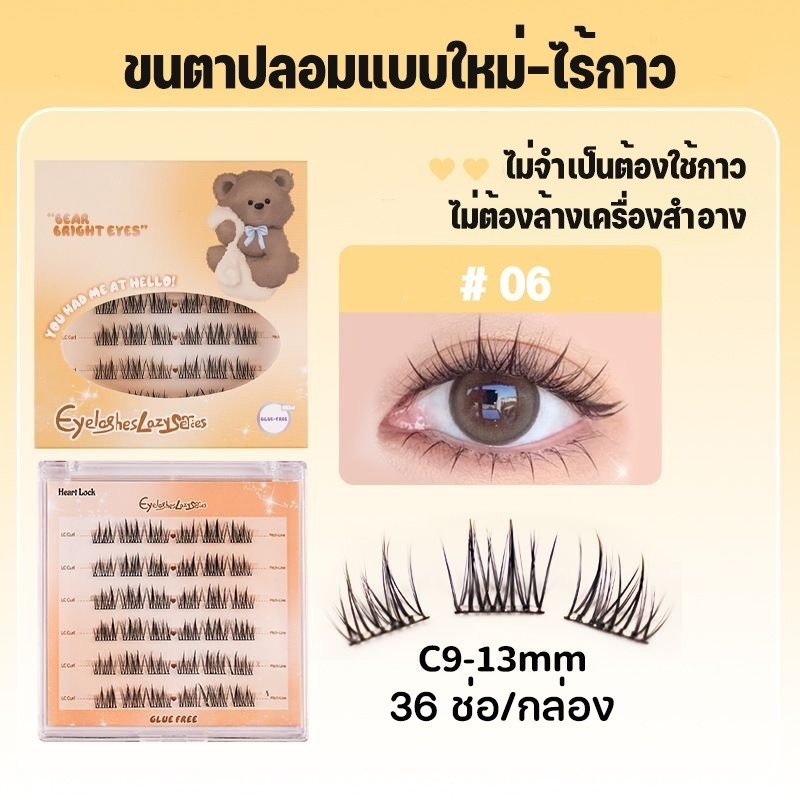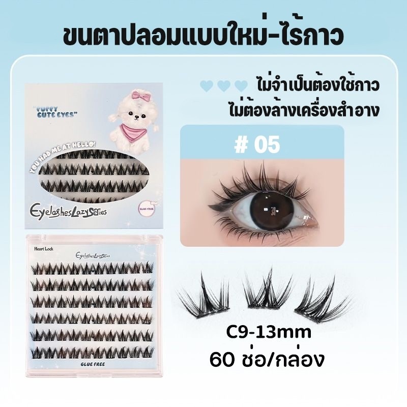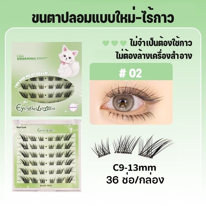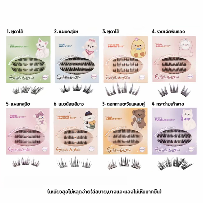 ขนตาปลอมกาวในตัว ติดง่าย ไม่ใช้กาว ใช้ซ้ำได้ เรียงเส้นสวย เป็นธรรมชาติ มีให้เลือกถึง 8 ทรง ขนาด 9 - 13 มม
