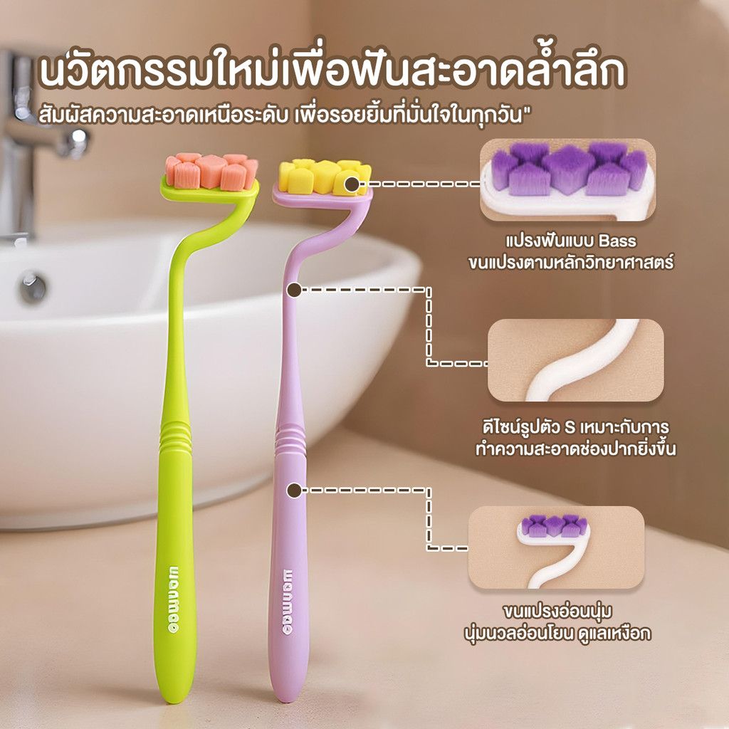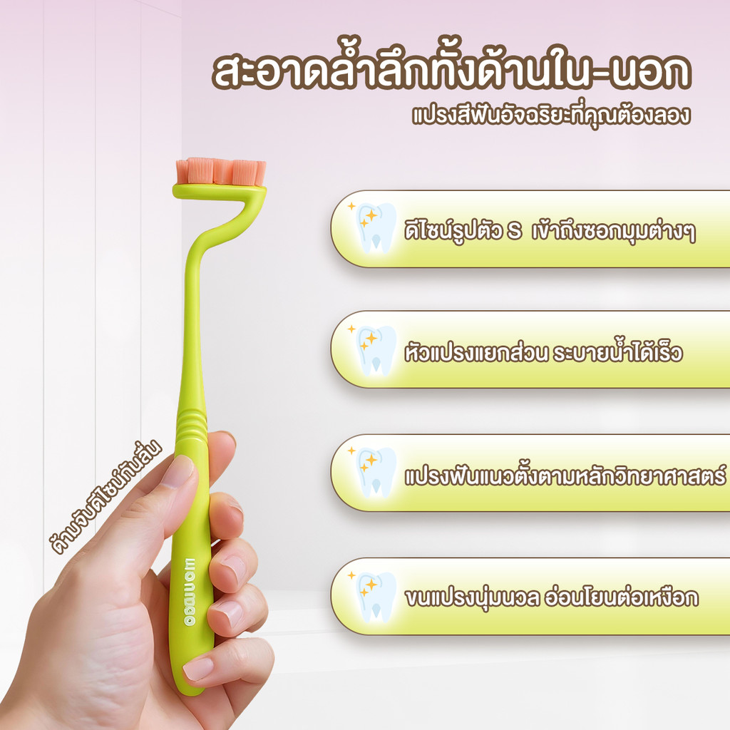 แปรงสีฟัน แปรงสีฟันผู้ใหญ่ แปรงแนวตั้งรูปตัว S ปกป้องเหงือก ทำความสะอาดลึก รุ่นบรรลุนิติภาวะ ขนแปรงอ่อนนุ่ม