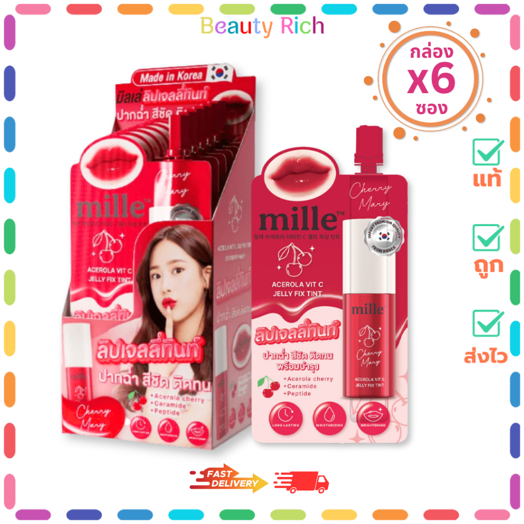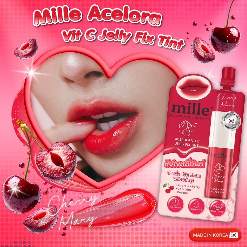 (กล่อง 6 ซอง)Mille Acerola Vit C Jelly Fix Tint #01 Cherry Mary มิลเล่ อะเซโรลา วิต ซี เจลลี่(3 g.)
