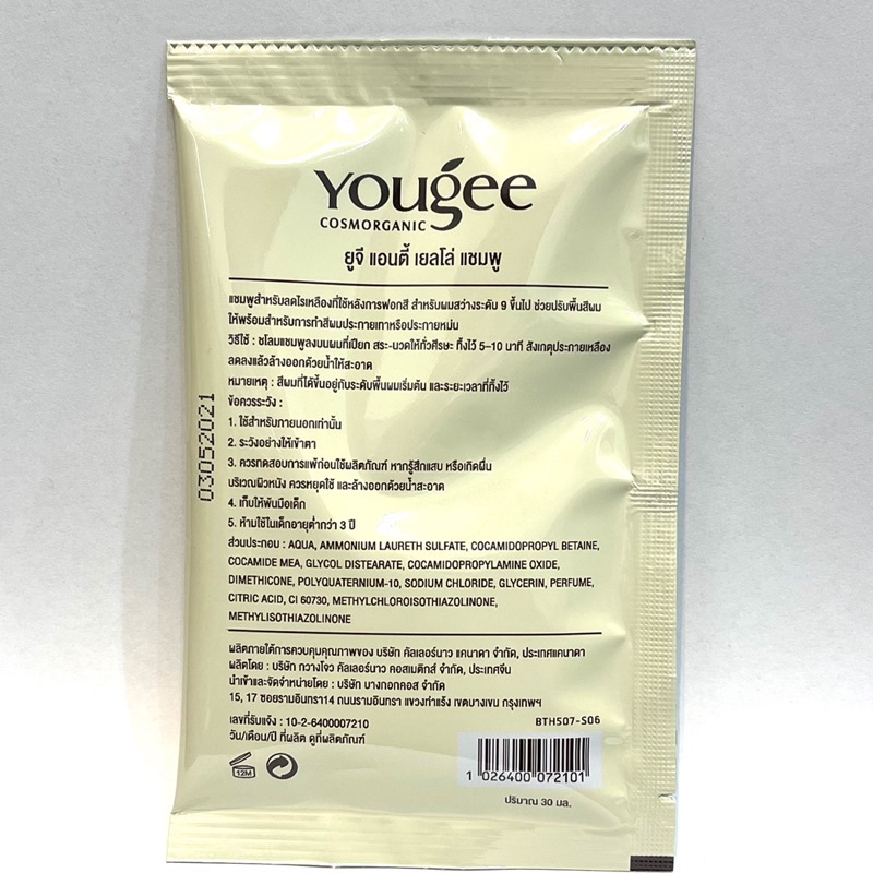 ยูจี แชมพู*ม่วง (แบบซอง) สำหรับผมโทนเทา Yougee anti yellow แชมพู ลดไรเหลือง Silver Shampoo 30ml รักษาสีผม ส่งไว พร้อมส่ง