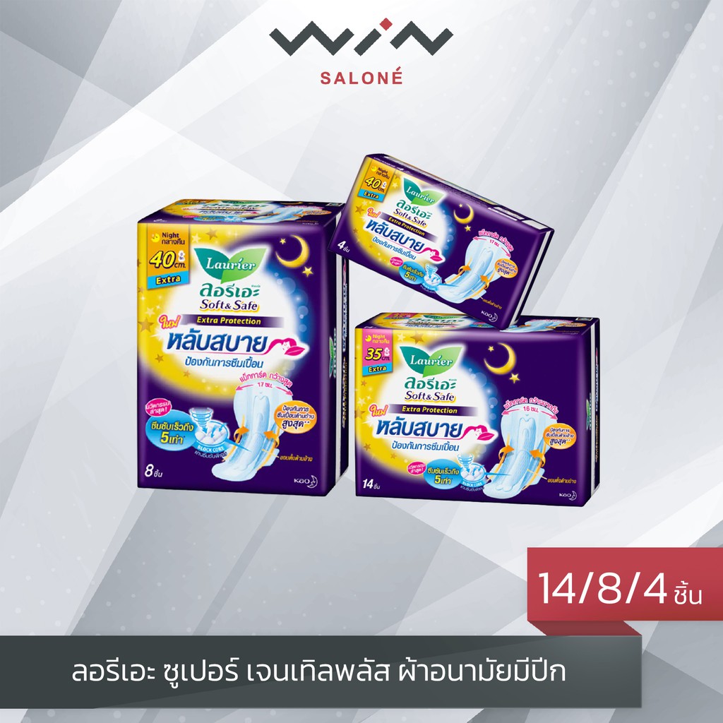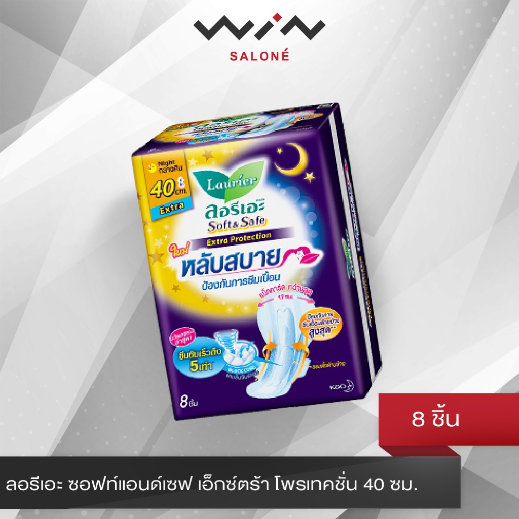 ลอรีเอะ ซอฟต์แอนด์เซฟ เอ็กซ์ตร้าโพรเทคชั่น ผ้าอนามัยกลางคืน แบบมีปีก ผิวหน้าพาวเวอร์สแควร์ ซึมซับเร็วถึง 5 เท่า