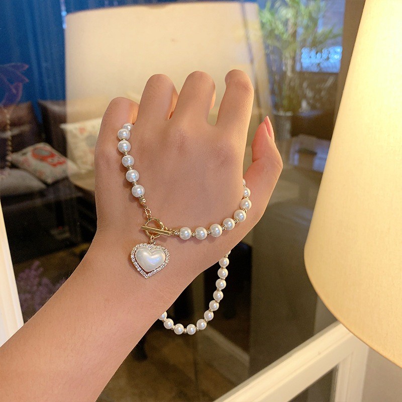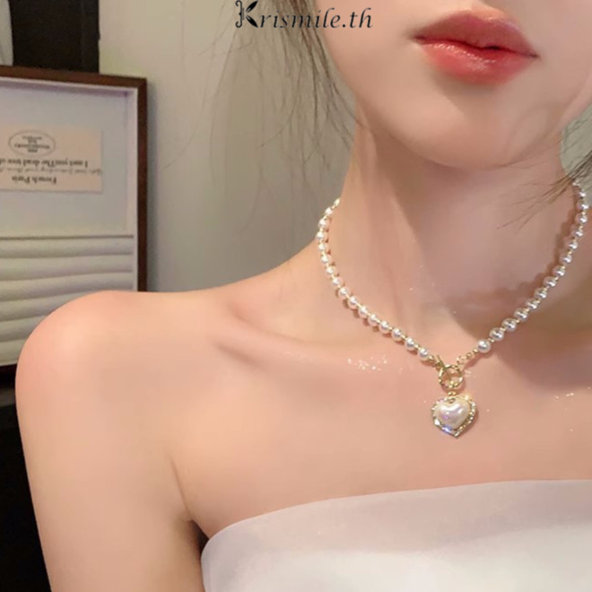 COD-ในไทยสร้อยคอ จี้รูปหัวใจประดับไข่มุก หรูหราละเอียดอ่อน หวานสไตล์เกาหลี สำหรับผู้หญิง-Krismile.th