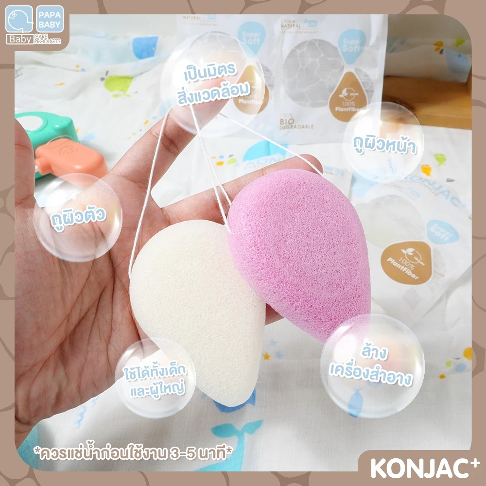 PAPA BABY ฟองน้ำใยบุก Konjac Sponge รุ่น PRA29 ฟองน้ำอาบน้ำเด็ก นุ่มพิเศษ ใช้ได้ทั้งเด็กและผู้ใหญ่ ฟองน้ำถูตัวเด็ก