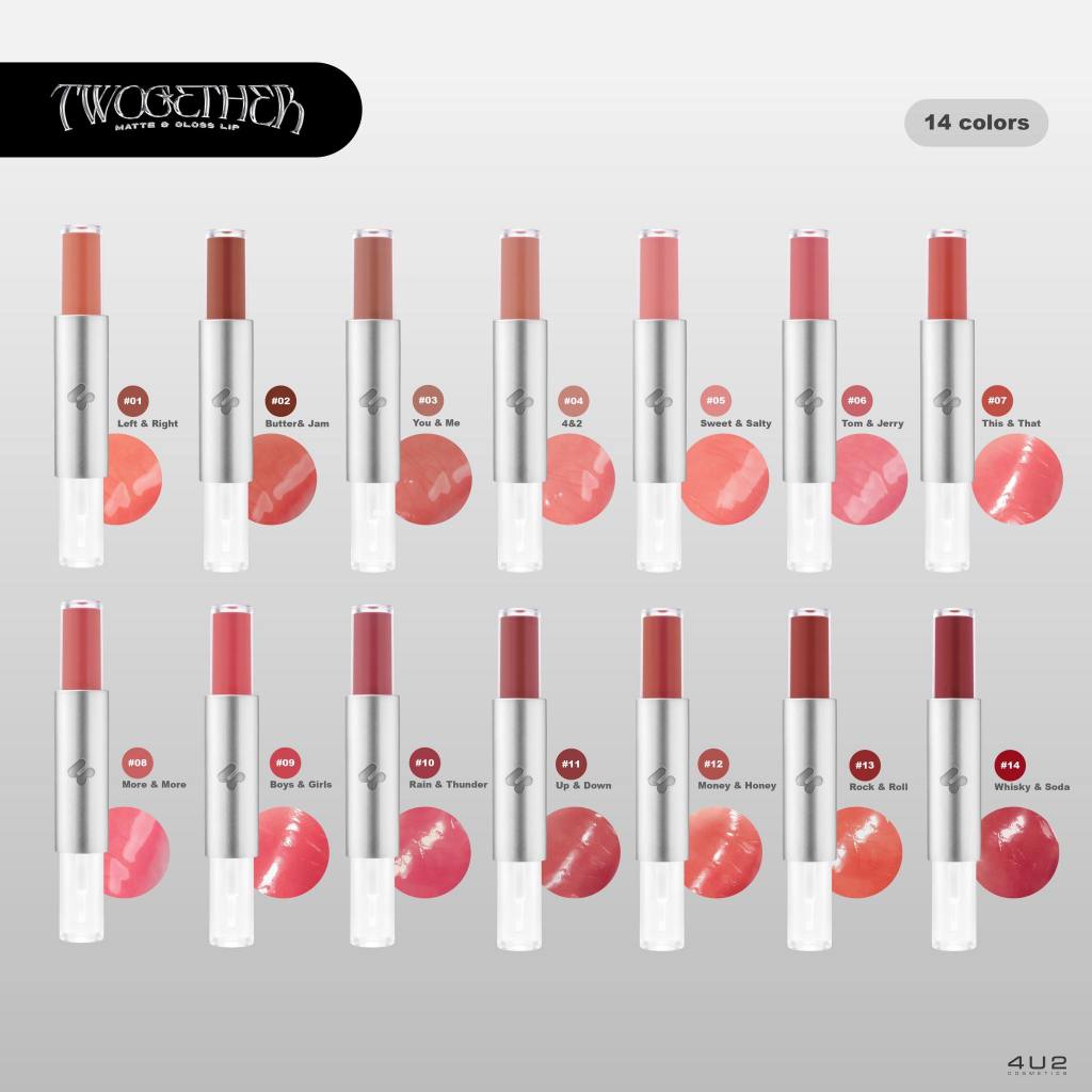 ถูก/แท้/มีไลฟ์ (2 ชิ้น 299.-) ลิป 4U2 Twogether Matte&Gloss Lip ลิปดูโอ้ ลิปกระจก เนื้อกลอส เนื้อแมท ปากฉ่ำ ฉ่ำวาว อวบอิ
