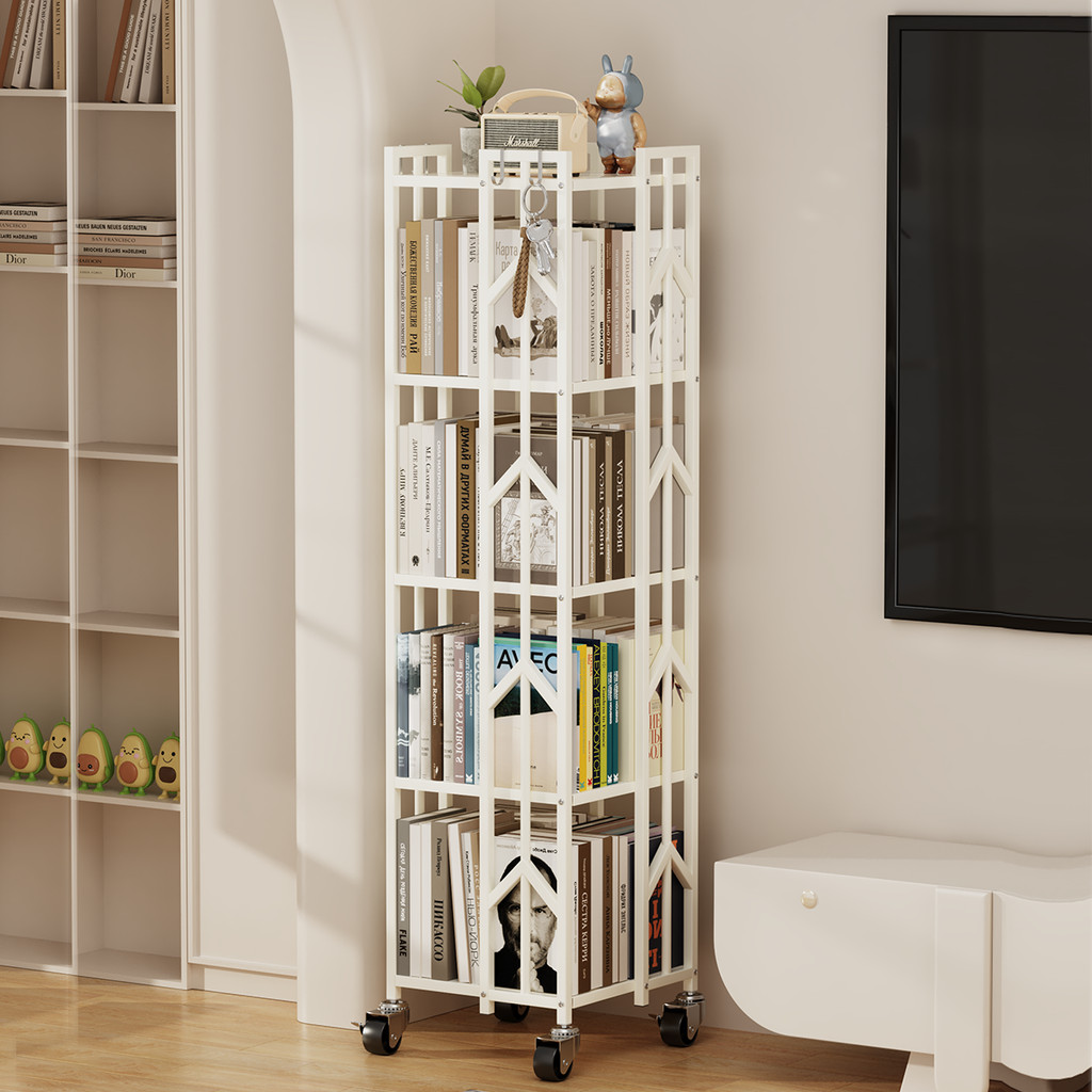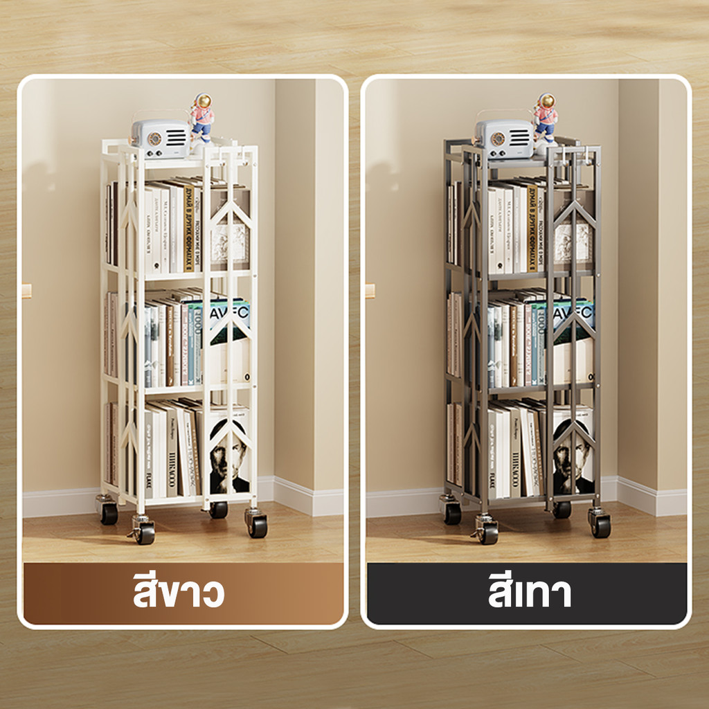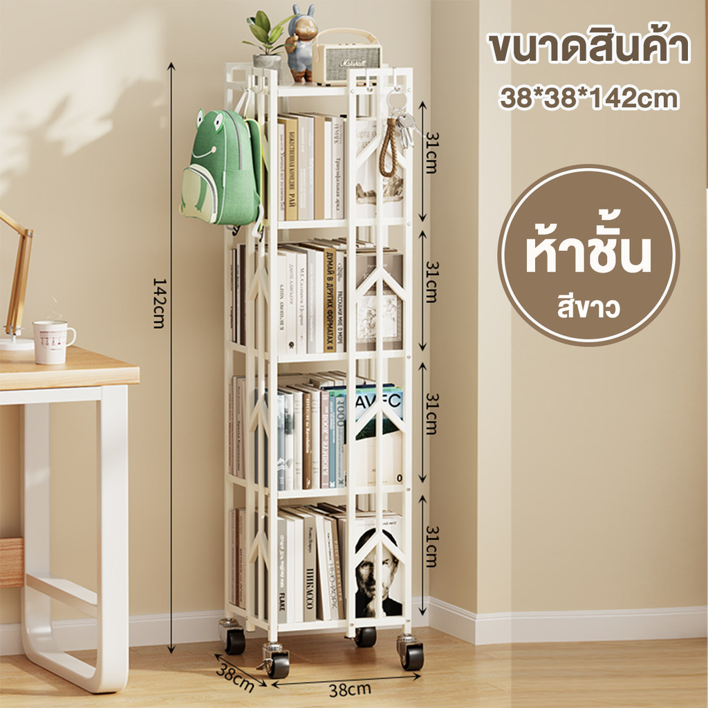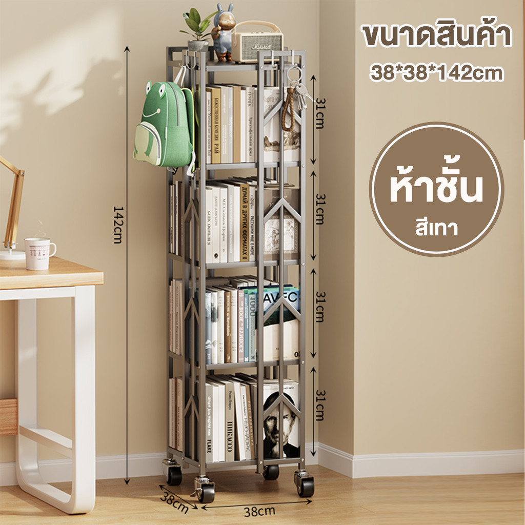 ชั้นวางหนังสือหมุนได้ 5ชั้น ชั้นวางหนังสือ ตู้หนังสือ 360 ° ชั้นเก็บของในห้องนั่งเล่น ความจุเยอะถอดออกได้หลาย