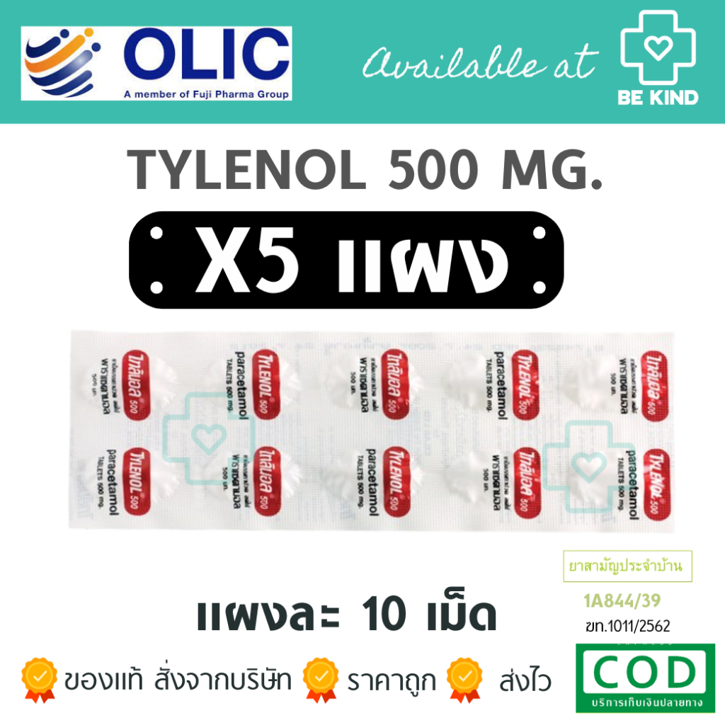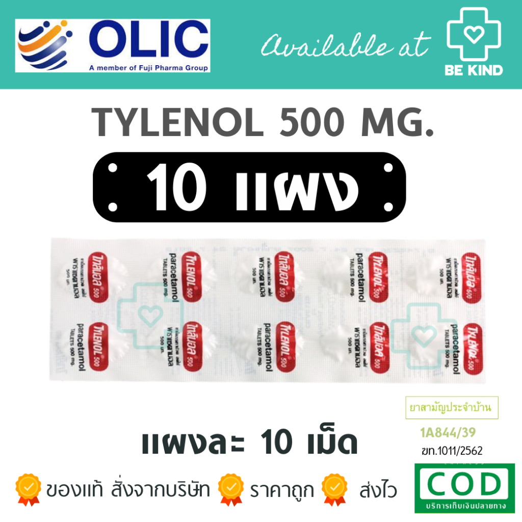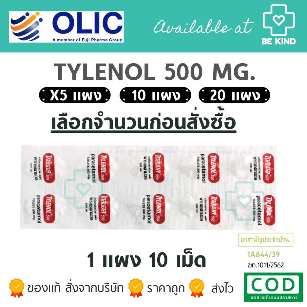 Tylenol 500 Mg. ไทลินอล Paracetamol ลดไข้ บรรเทาปวด