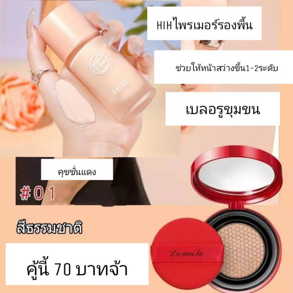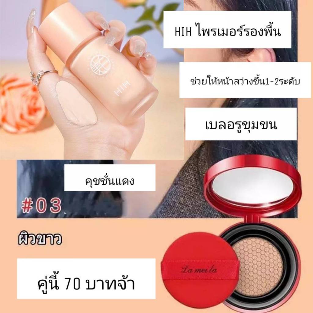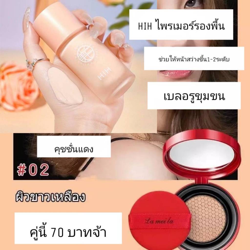 (1 แถม 2)HIH ไพรเมอร์ แถม คุชชั่นแดง+พัฟ คุมมัน กันเหงื่อ ปกปิดได้ดี ติดทน ผิวหน้า รองพื้น กันน้ำ