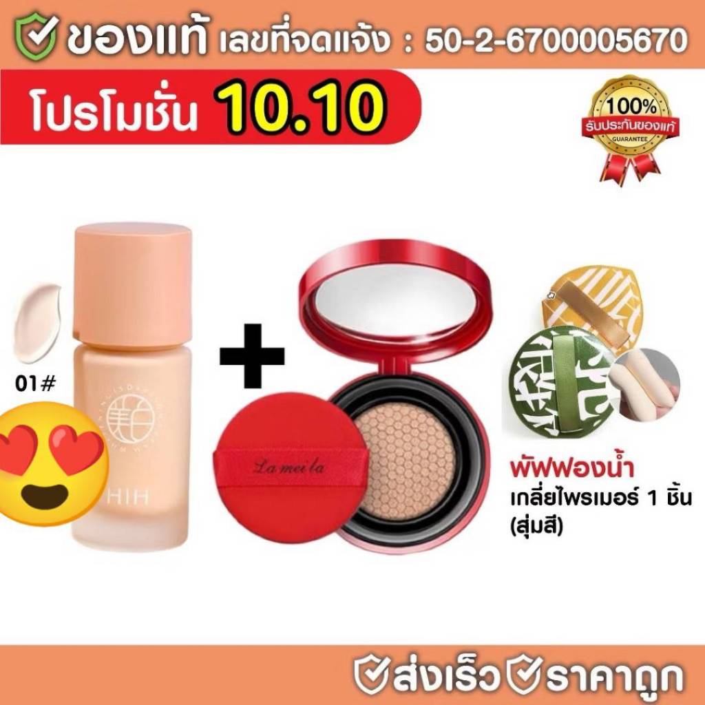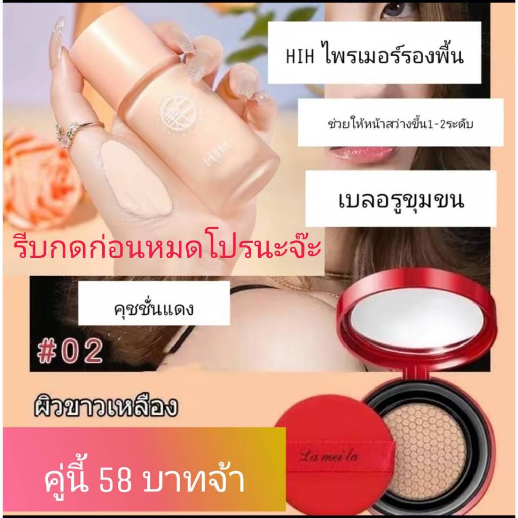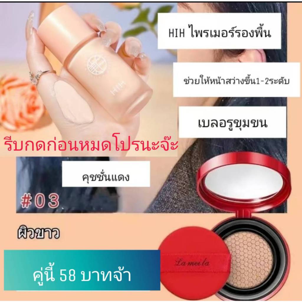 (1 แถม 2)HIH ไพรเมอร์ แถม คุชชั่นแดง+พัฟ คุมมัน กันเหงื่อ ปกปิดได้ดี ติดทน ผิวหน้า รองพื้น กันน้ำ