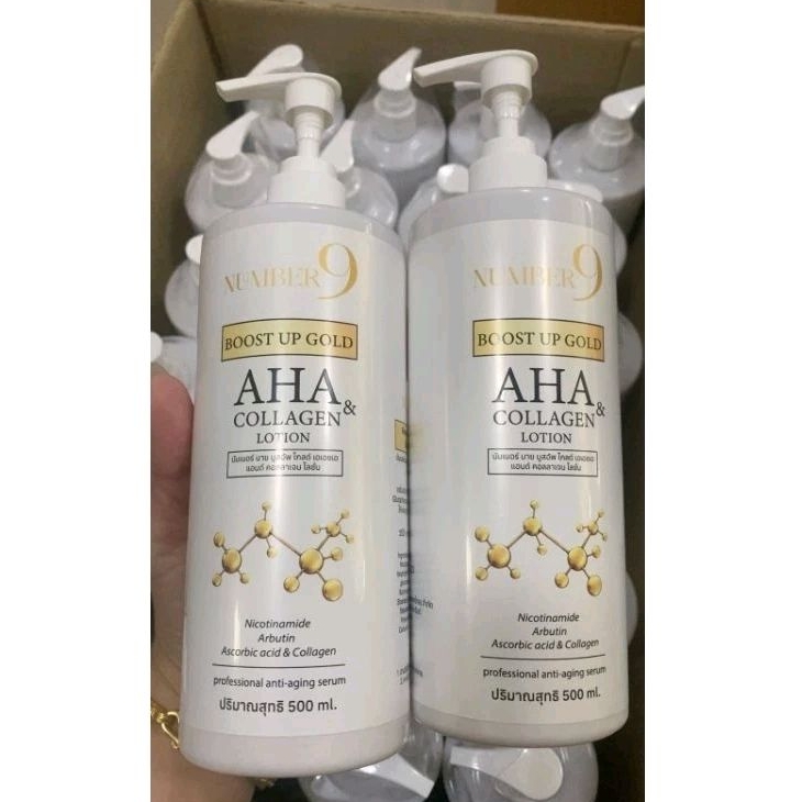 1 แถม 1 โลชั่นทองคำผสมคอลลาเจน ขนาด 500ml Body Lotion Collagen AHA แบรนด์นับเบอร์ไนน์