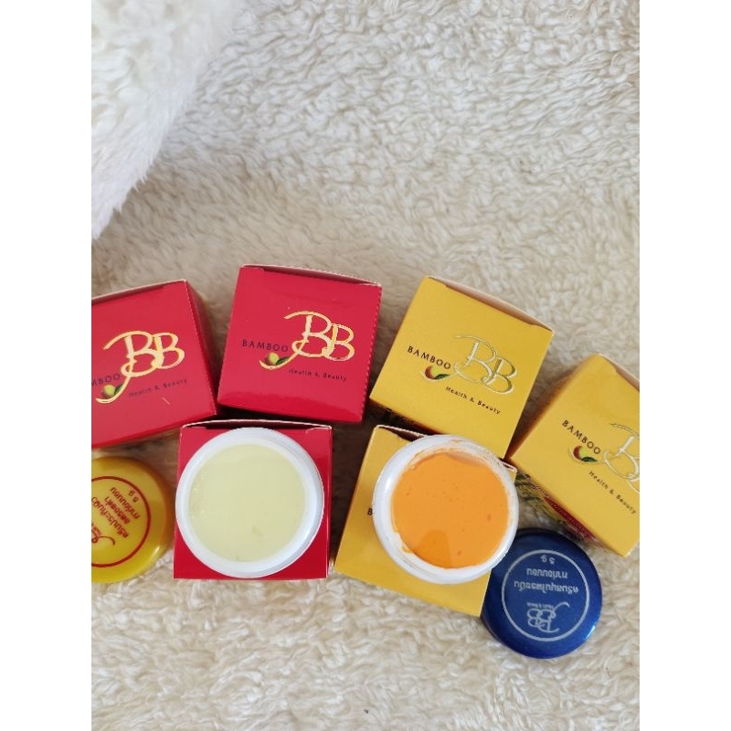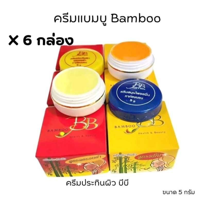 (6 กล่อง) ครีมแบมบู2สูตร กล่องเหลือง 3 กล่องแดง 3กล่อง ขนาด 5 กรัม มอยเจอร์ไรเซอร์ Moisturizer
