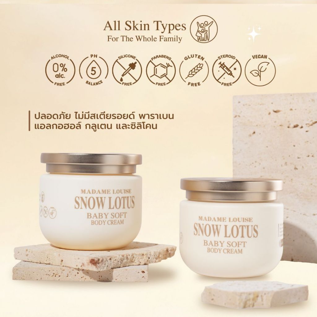 เซตขายดี! 🎊มาดามหลุยส์ 🎊รวมโปร ครีมทาผิวกาย บัวหิมะ SNOW LOTUS BABY SOFT BODY CREAM (เลือกเซต)
