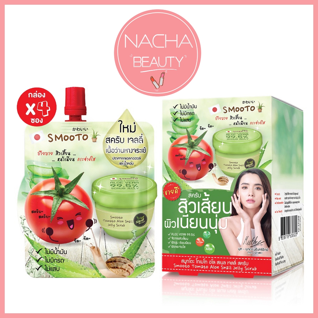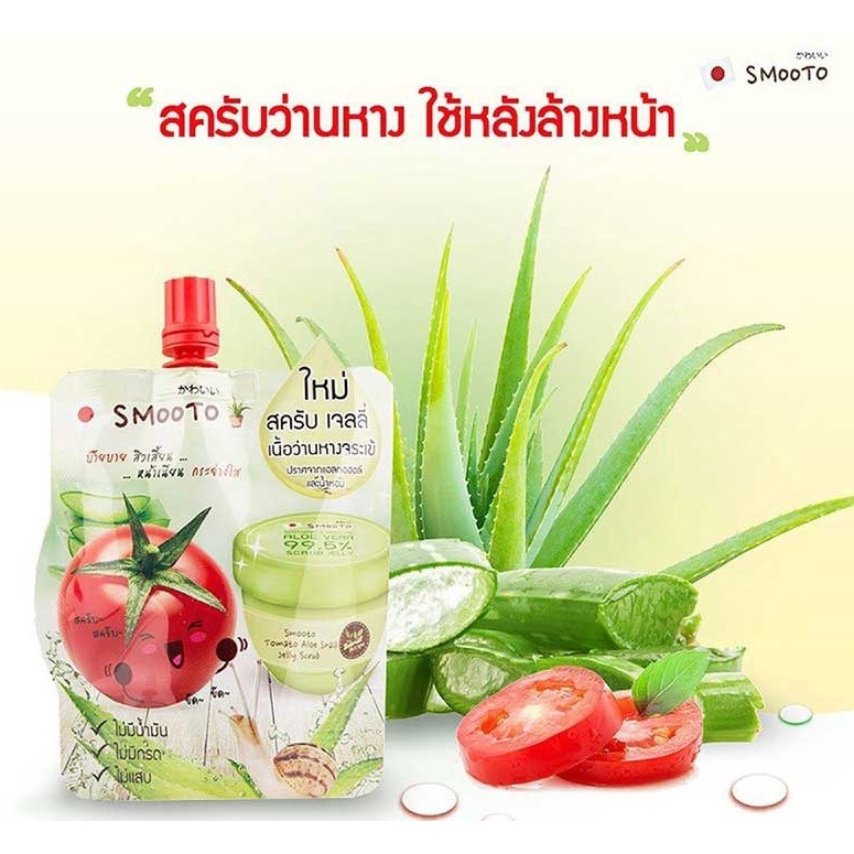 (4ซอง/กล่อง) smooto tomato aloe snail jelly scrub สมูทโตะ โทเมโท อโล สเนล เจลลี่ สครับ [8822]