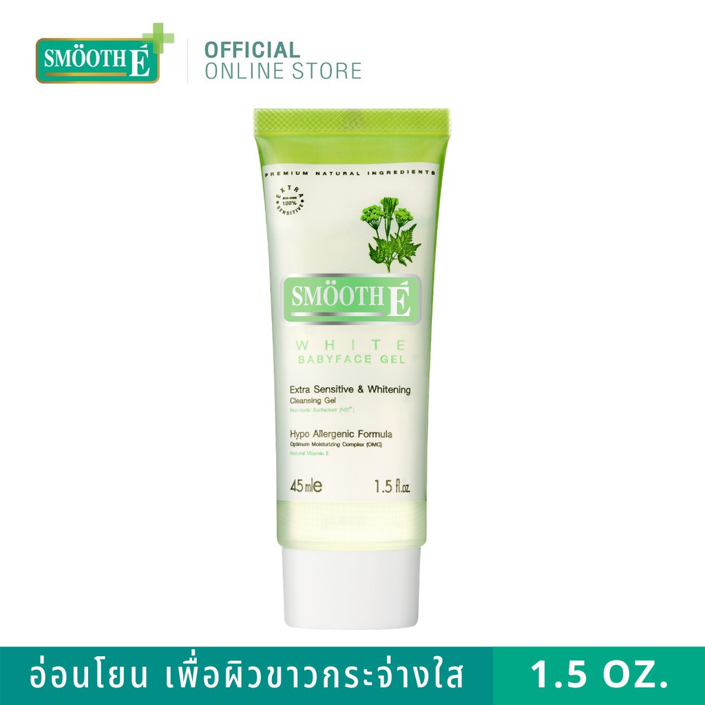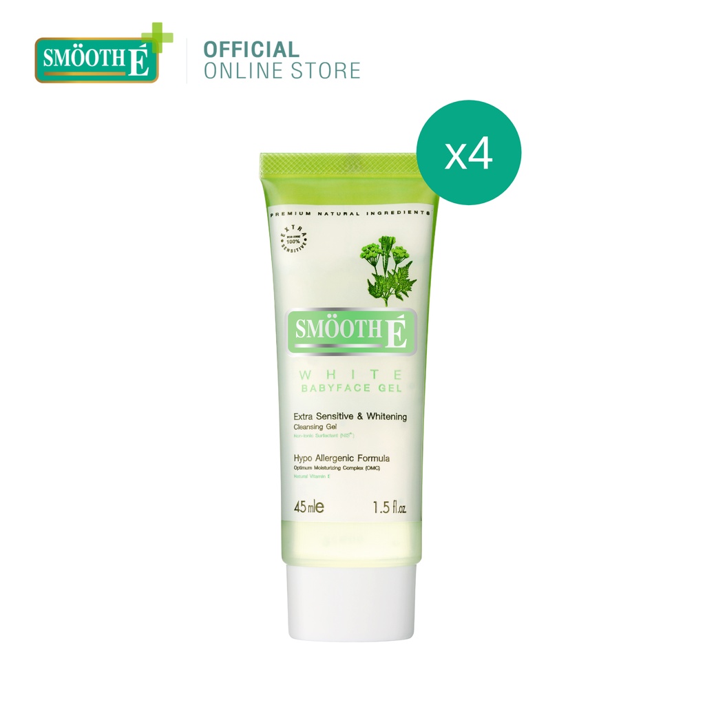 Smooth E เจลล้างหน้า สูตรไม่มีฟอง ไม่ทิ้งสารตกค้าง White Babyface Gel 1.5 Oz. ผิวขาวกระจ่างใส อ่อนโยน สมูทอี [แพ็ค 4]