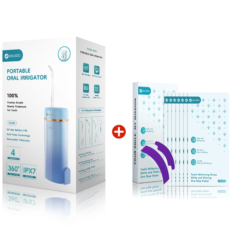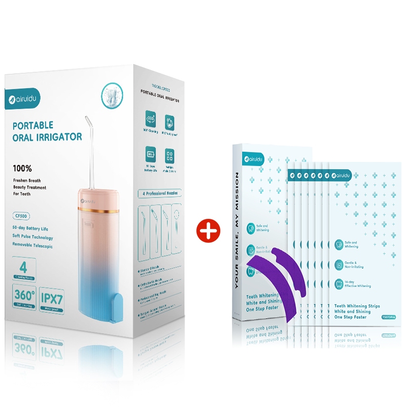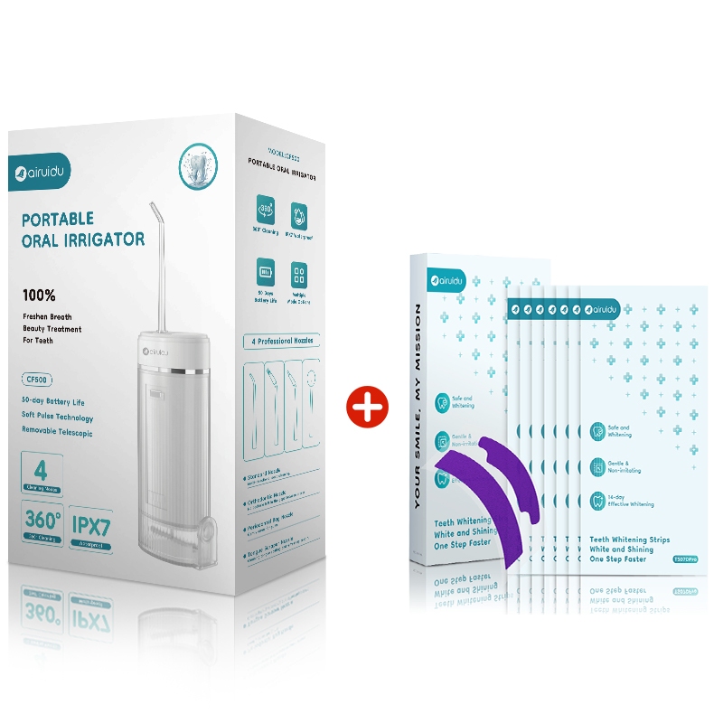 Airuidu CF500+TS07Pro Set Water Flosser 160ml ไหมขัดฟันพลังน้ำ & Teeth Whitening Strips (7คู่/14ชิ้น) Cavity Care