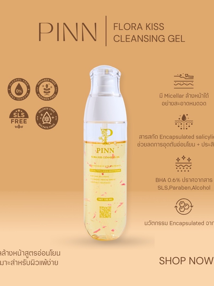 PINN เจลล้างหน้ารักษาสิว รอยสิว ฟื้นฟูผิวติดสาร สำหรับผิวแพ้ง่าย สูตรอ่อนโยน 100 ml