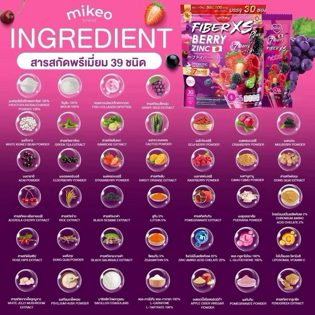 มิเกวไฟเบอร์เบอรี่ซิงค์ Mikeo fiber berry zinc 1 ห่อ 30 ซอง