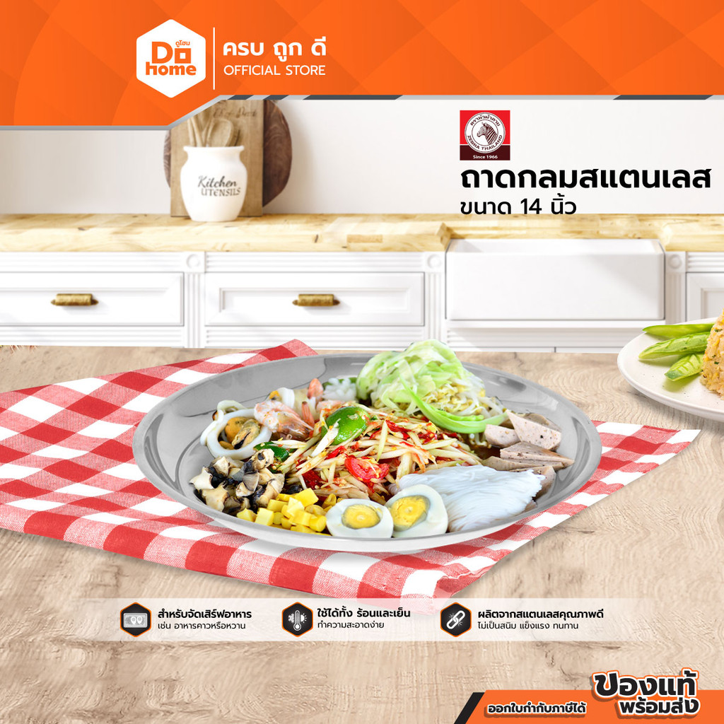 ตราหัวม้าลาย ถาดกลมสแตนเลสส 14 นิ้ว |BAI|