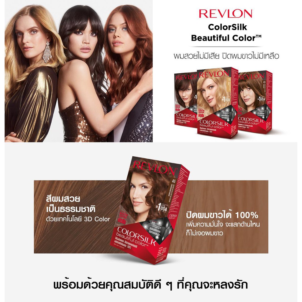 Revlon Colorsilk Beautiful Color เรฟลอน ครีมเปลี่ยนสีผม ยาย้อมผม สูตรอ่อนโยนปราศจากแอมโมเนีย ปิดผมขาว ผมนุ่มสวย ไม่แห้ง
