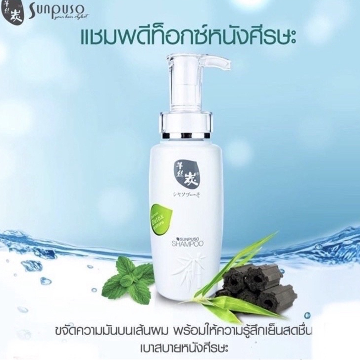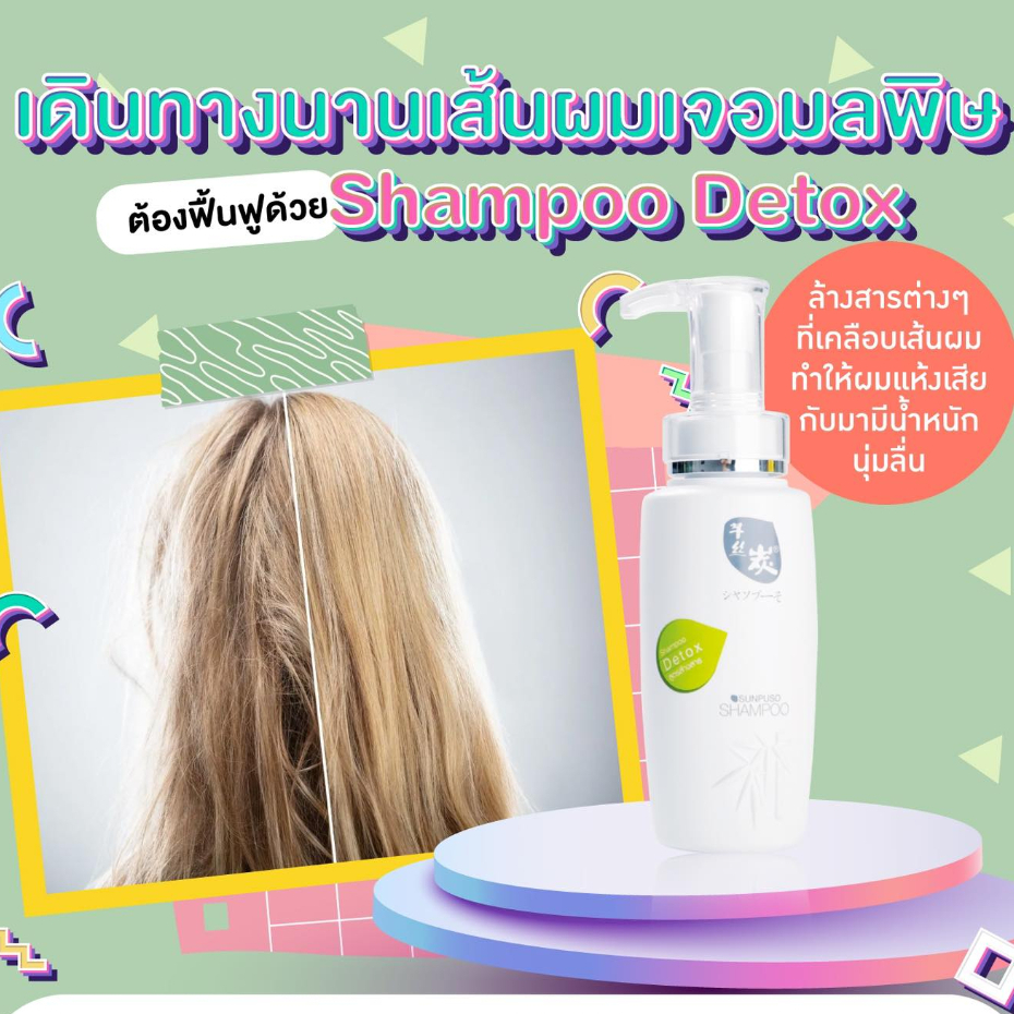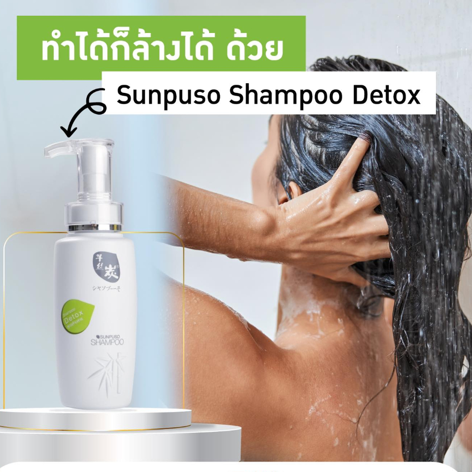 🐋SUNPUSO SHAMPOO (Detox Hair) 300ml. แชมพู ซันปุโซะ สูตรดีท็อกเส้นผม ล้างสารเคมี ตกค้าง สำหรับผมทีทำเคมี ทุกชนิด เย็น