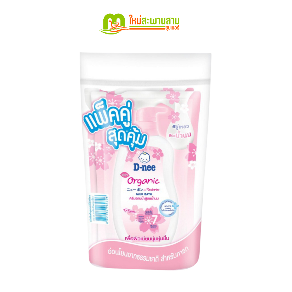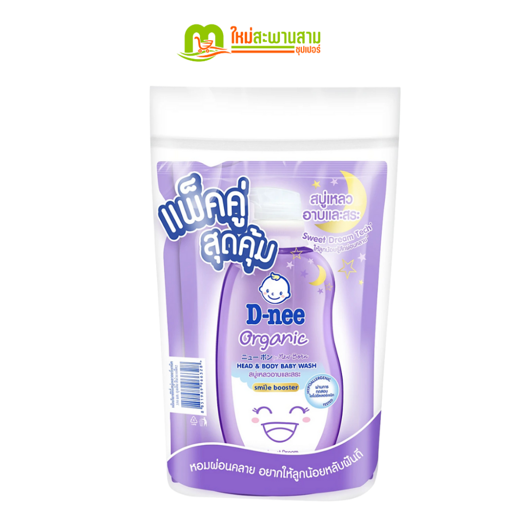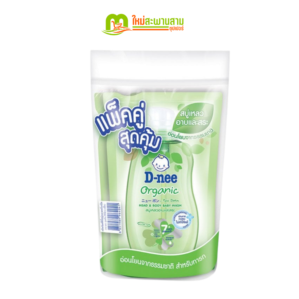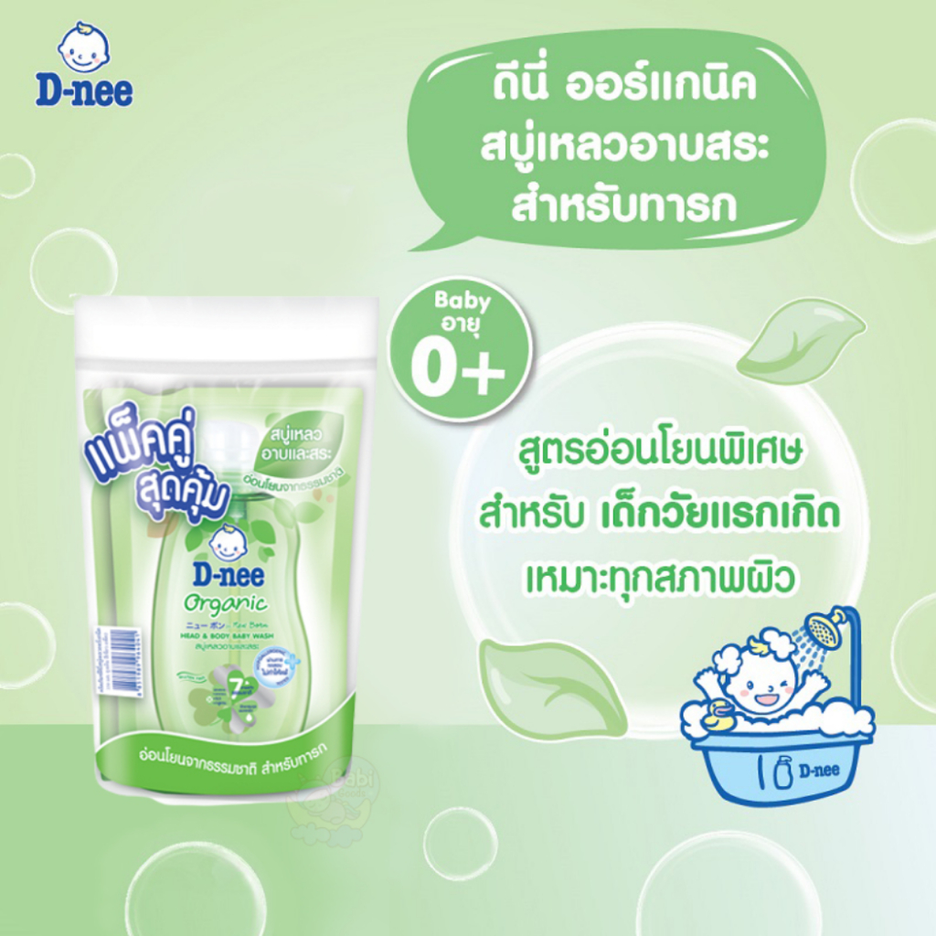 [แพ็คคู่] ดีนี่ D-nee สูตรอ่อนโยน Organic สบู่เหลวเด็กอาบและสระ ถุงเติม ขนาด 350x2 มล.