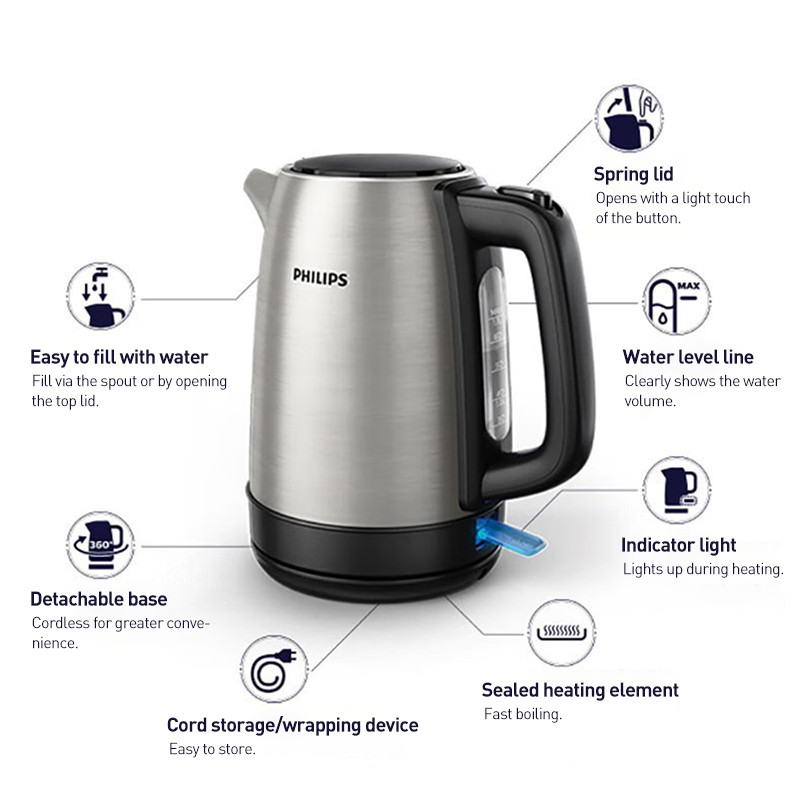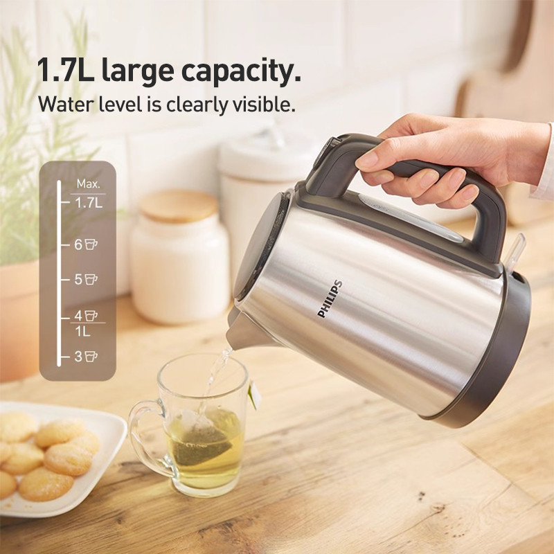 ฟิลิปส์ กาต้มน้ําไฟฟ้าป้องกันความปลอดภัยหลายตัวกาต้มน้ําไฟฟ้า 1.7ล