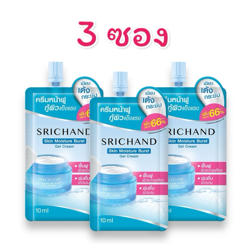 (แยกขาย 1,2,3 ซอง) ศรีจันทร์ ครีมหน้าฟู กู้ผิว Srichand Skin Moisture Burst Gel Cream 10 ml.