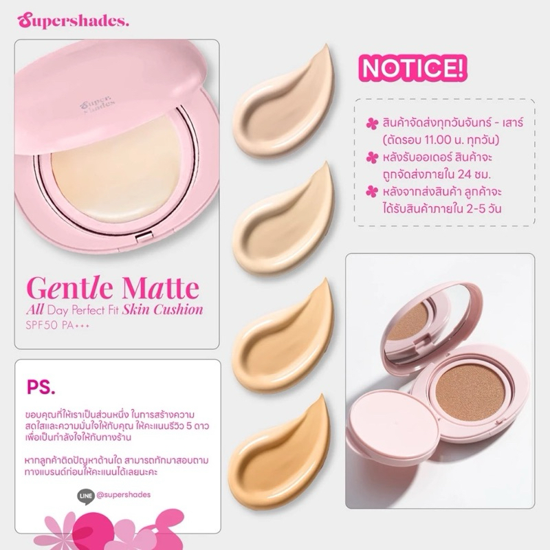 Supershades Gentle Matte All Day Perfect Fit Skin Cushion SPF50 PA+++เจนเทิล แ มท ออลเดย์ สกิน คุชชั่น มีกันแดด ขนาด 13 g