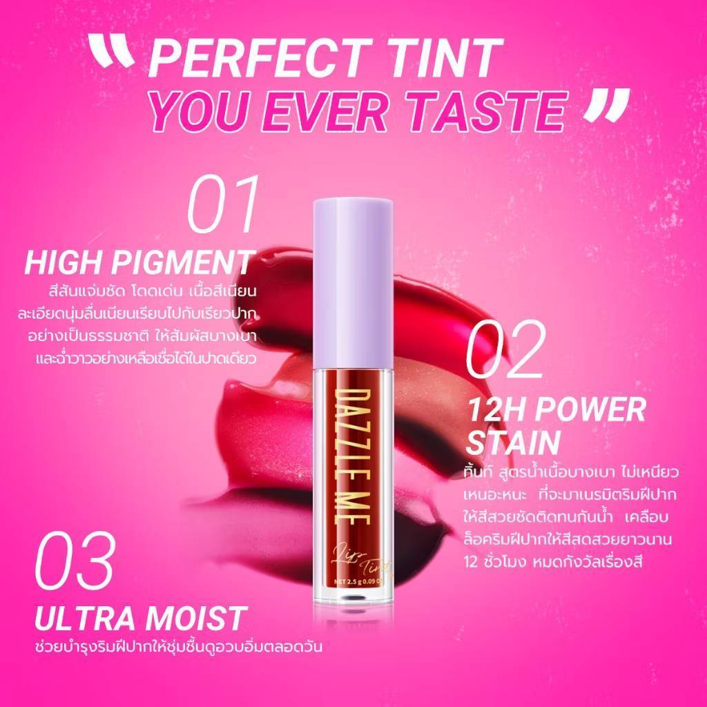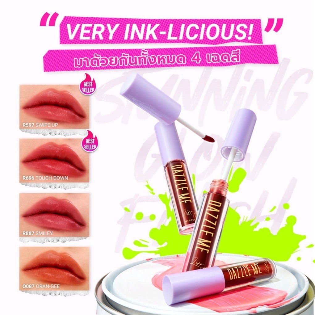 DAZZLE ME Ink-Licious Lip Tint 2.5g ลิปทิ้นท์เนื้อน้ำ พิกเมนต์แน่นสวยฉ่ำ เซต 4 เฉดสี
