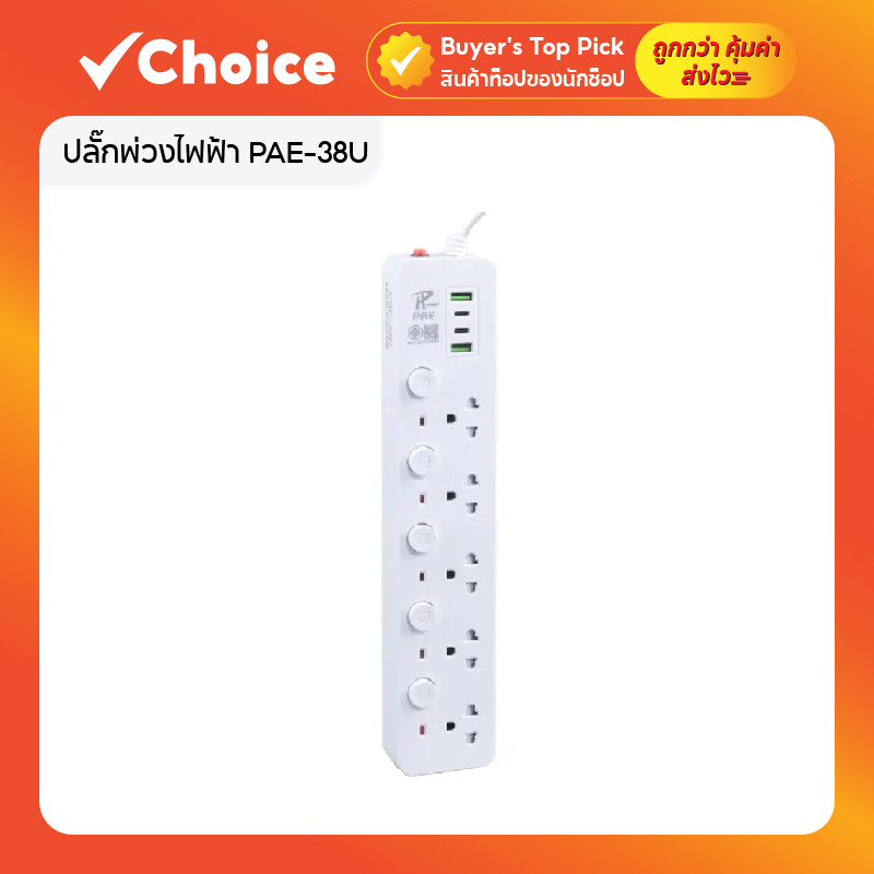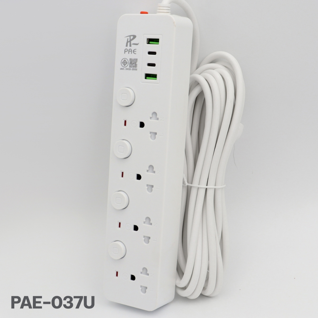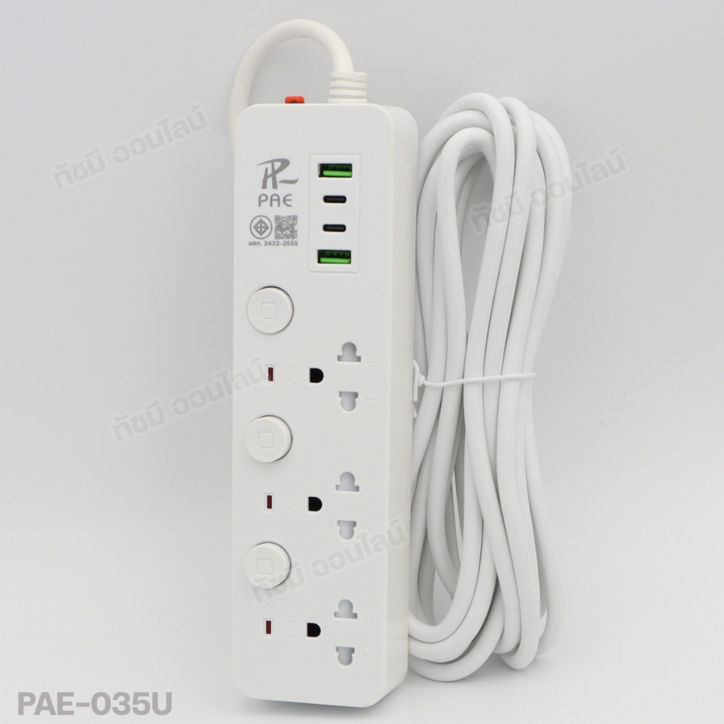 ปลั๊กพ่วงไฟฟ้า PAE-38U พร้อมช่อง USB และ Type-C รองรับกำลังไฟ 2300W