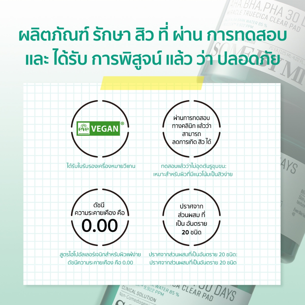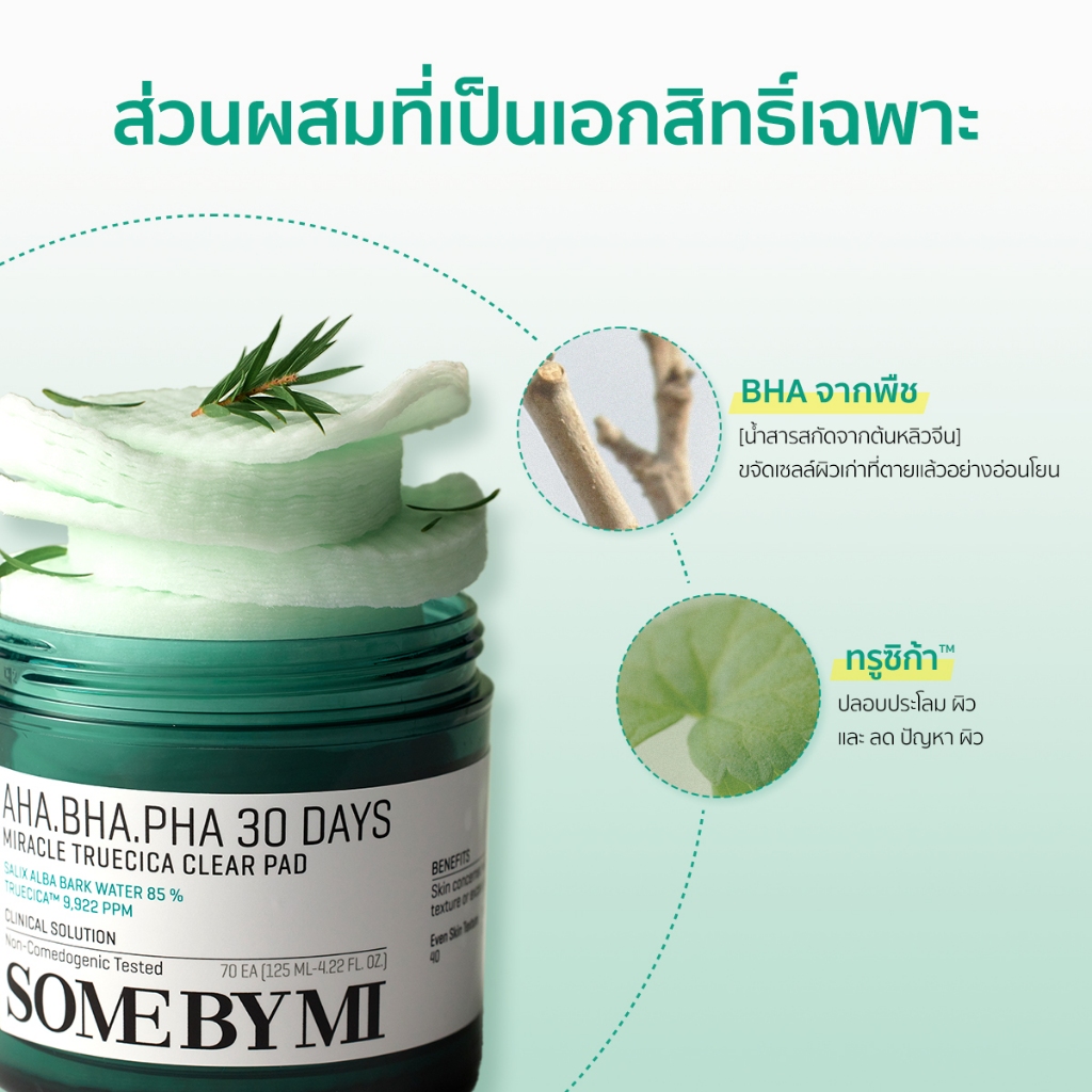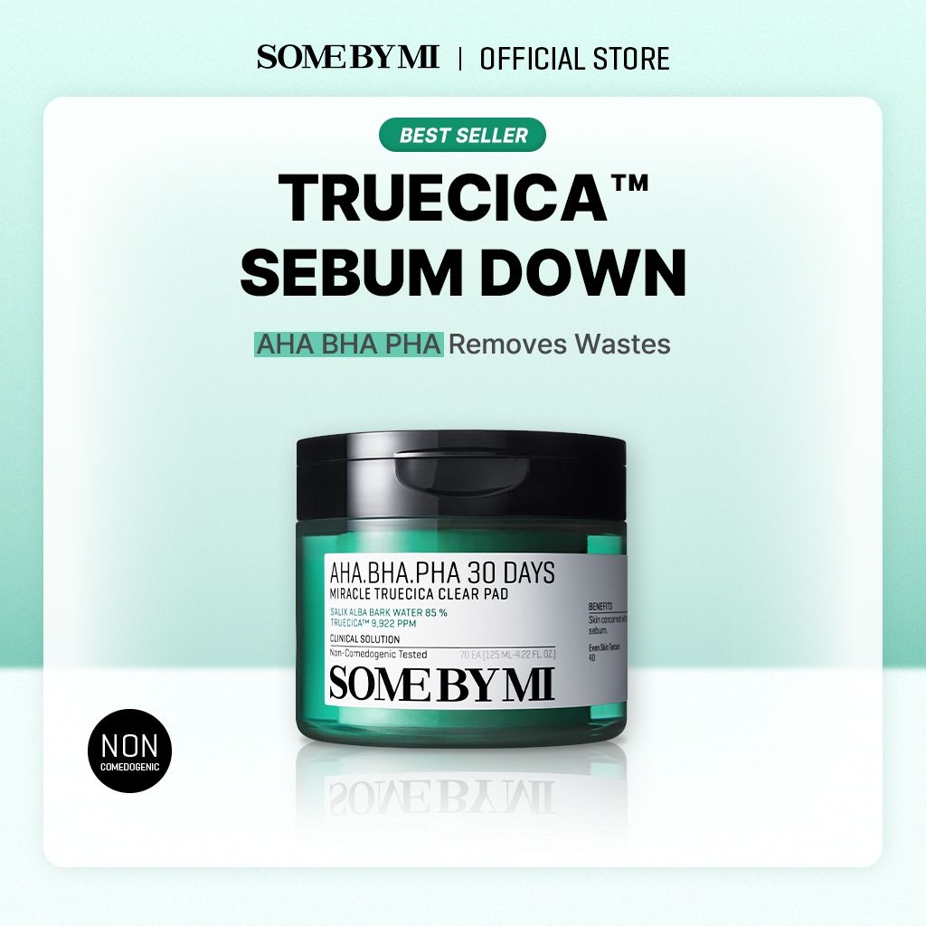 SOME BY MI AHA.BHA.PHA 30 Days Miracle Truecica Clear Pad [70ea,125ml], ช่วยผลัดเซลล์ผิวที่เสื่อมสภาพอย่างอ่อนโยน, ควบคุมความมันส่วนเกินเพื่อผิวสมดุล