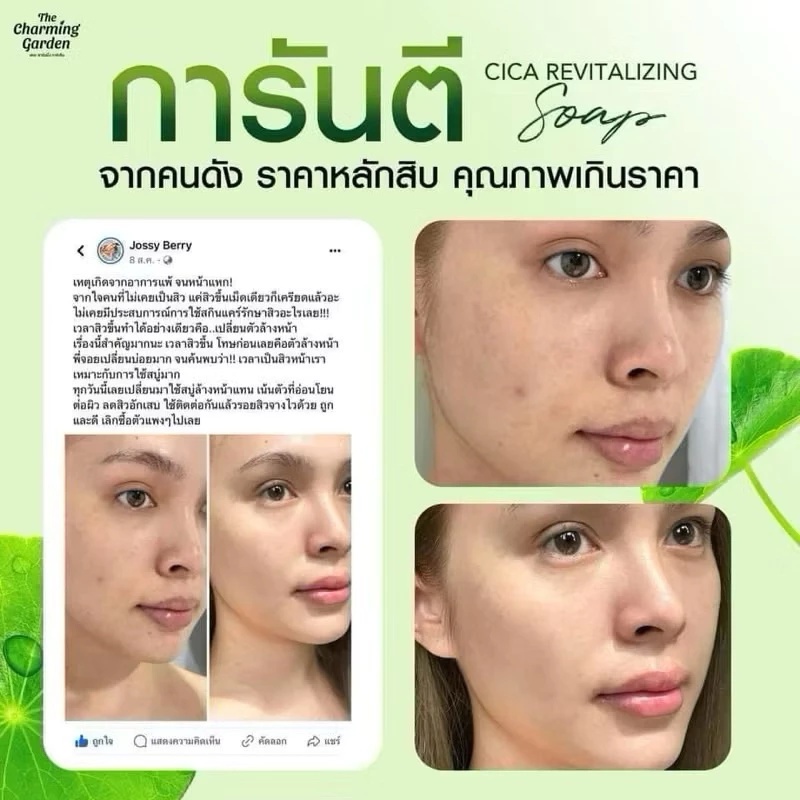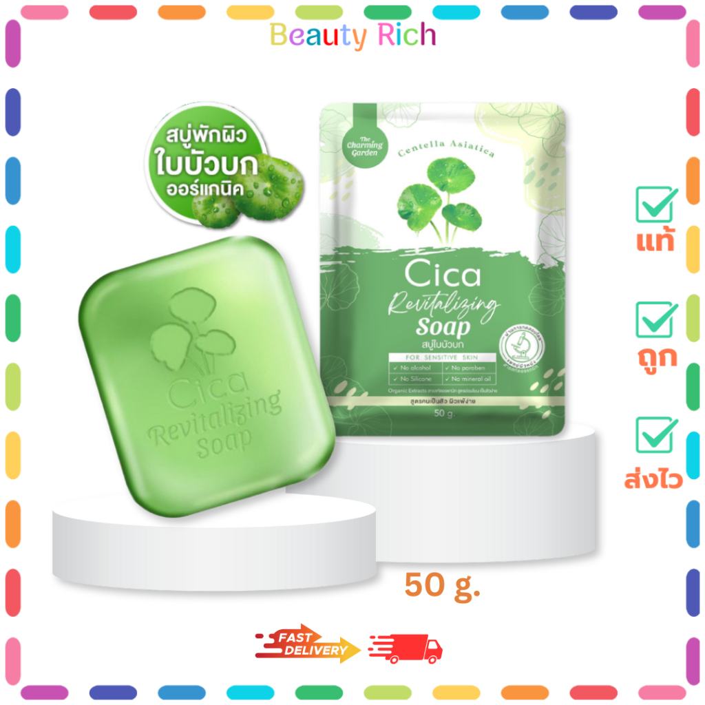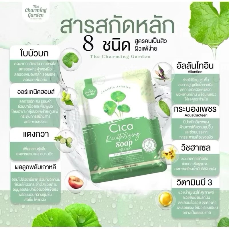 (1 ก้อน) The Charming Garden Cica Soap สบู่ใบบัวบก สบู่ ออแกนิค (ปริมาณ 50 กรัม)
