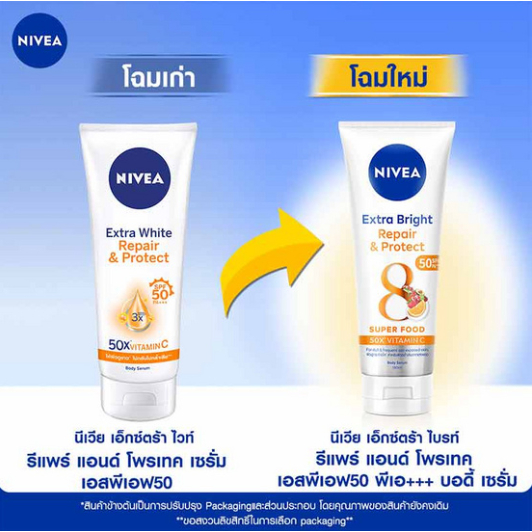 Nivea นีเวีย เอ็กซ์ตร้า ไบรท์ รีแพร์ แอนด์ โพรเทค บอดี้เซรั่ม 320 มล. SPF 50 PA++++ เซรั่มบำรุงผิวกาย