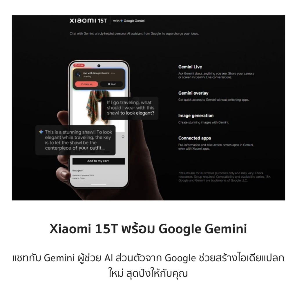 สมาร์ทโฟน Xiaomi 15T 5G เสียวหมี่ 12+512GB 6.83นิ้ว กล้อง 50MP+50MP+ 12MP Triple Camera แบต5,500 mAh 67W Fast Charging