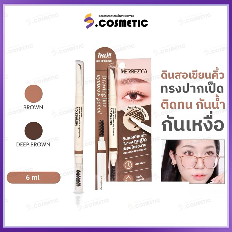 Merrez’Ca เมอร์เรซกา ดรออิ้ง ไลน์ อายโบรว์ เพ็นซิล 0.3 กรัม ดีพ บราวน์ / บราวน์