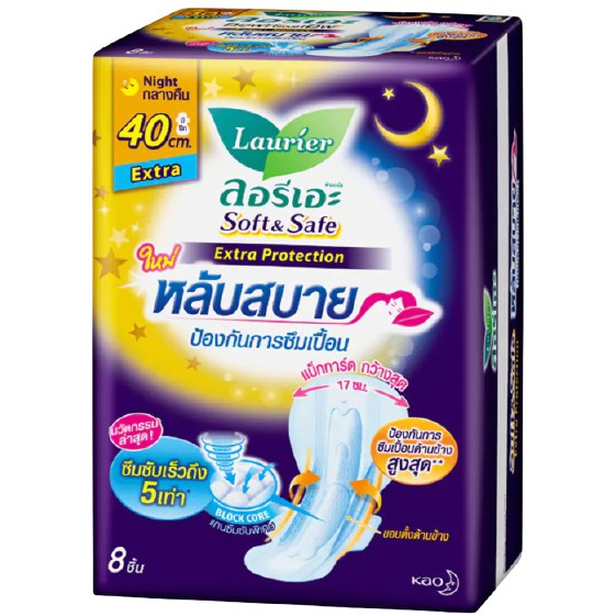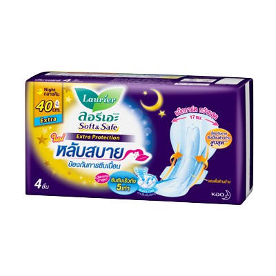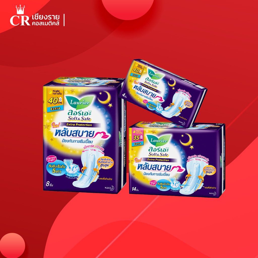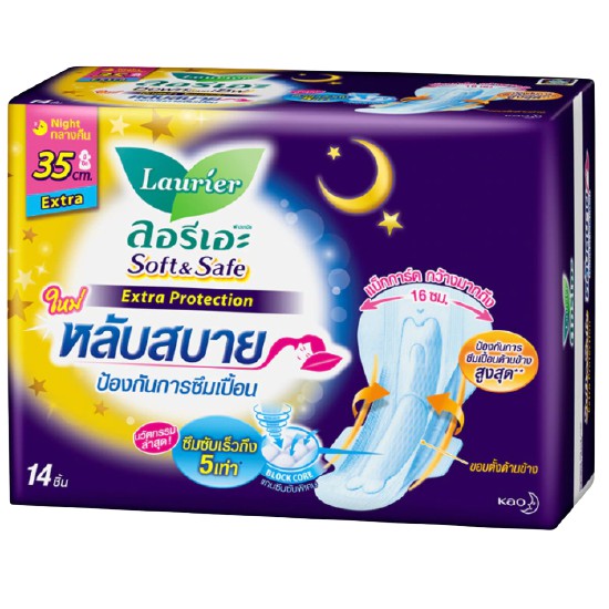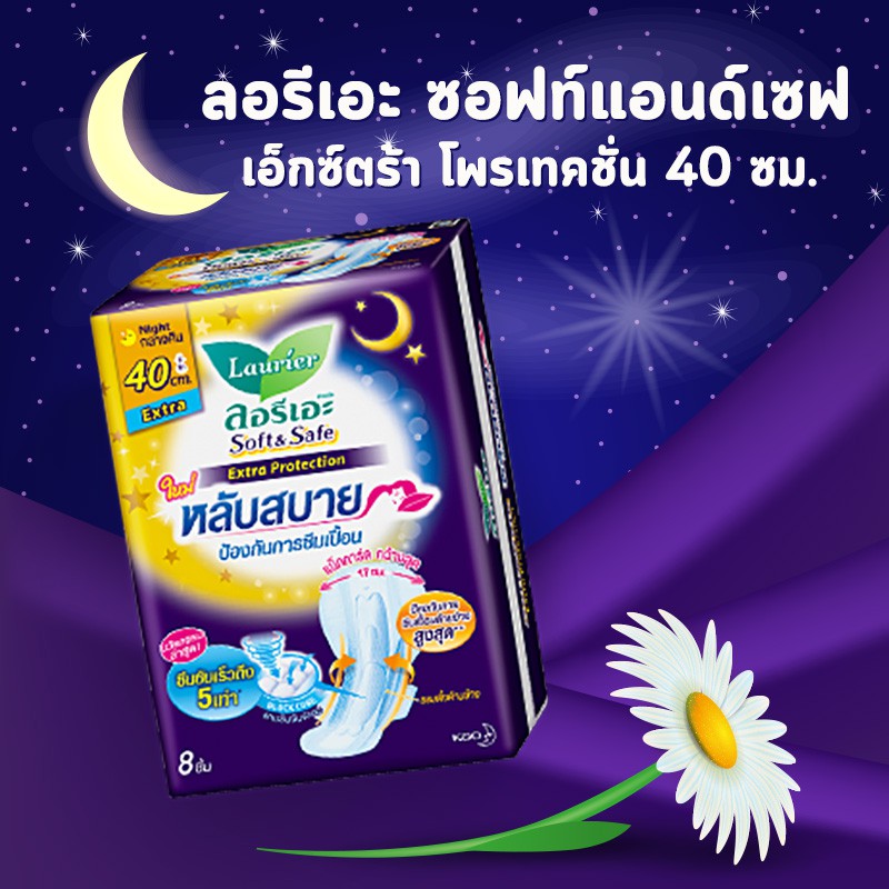 ลอรีเอะ ซอฟต์แอนด์เซฟ เอ็กซ์ตร้าโพรเทคชั่น ผ้าอนามัยกลางคืน แบบมีปีก ผิวหน้าพาวเวอร์สแควร์ ซึมซับเร็วถึง 5 เท่า
