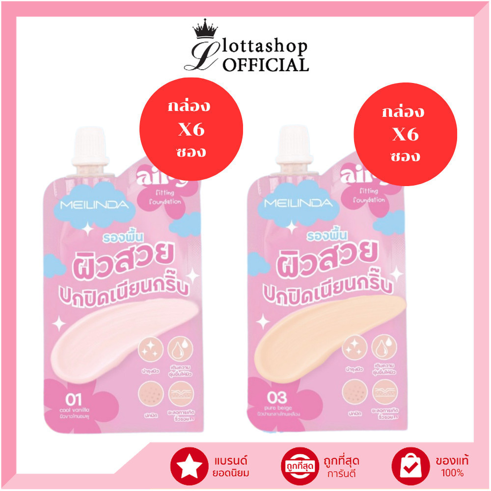 🔥แท้/ดีลสุดคุ้ม/ไลฟ์ทุกวัน🔥(กล่องx6ซอง) MC8021 Meilinda Airy Fitting Foundation รองพื้น (L)