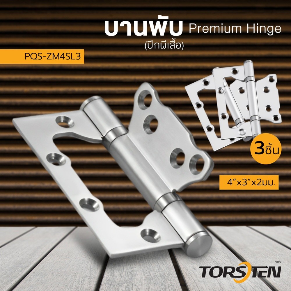 GlobalHouse TORSTEN บานพับปีกผีเสื้อสเตนเลส PQS-ZM4SL3 4x3x2มม. 3ชื้น สีสเตนเลส สินค้าของแท้คุณภาพดี