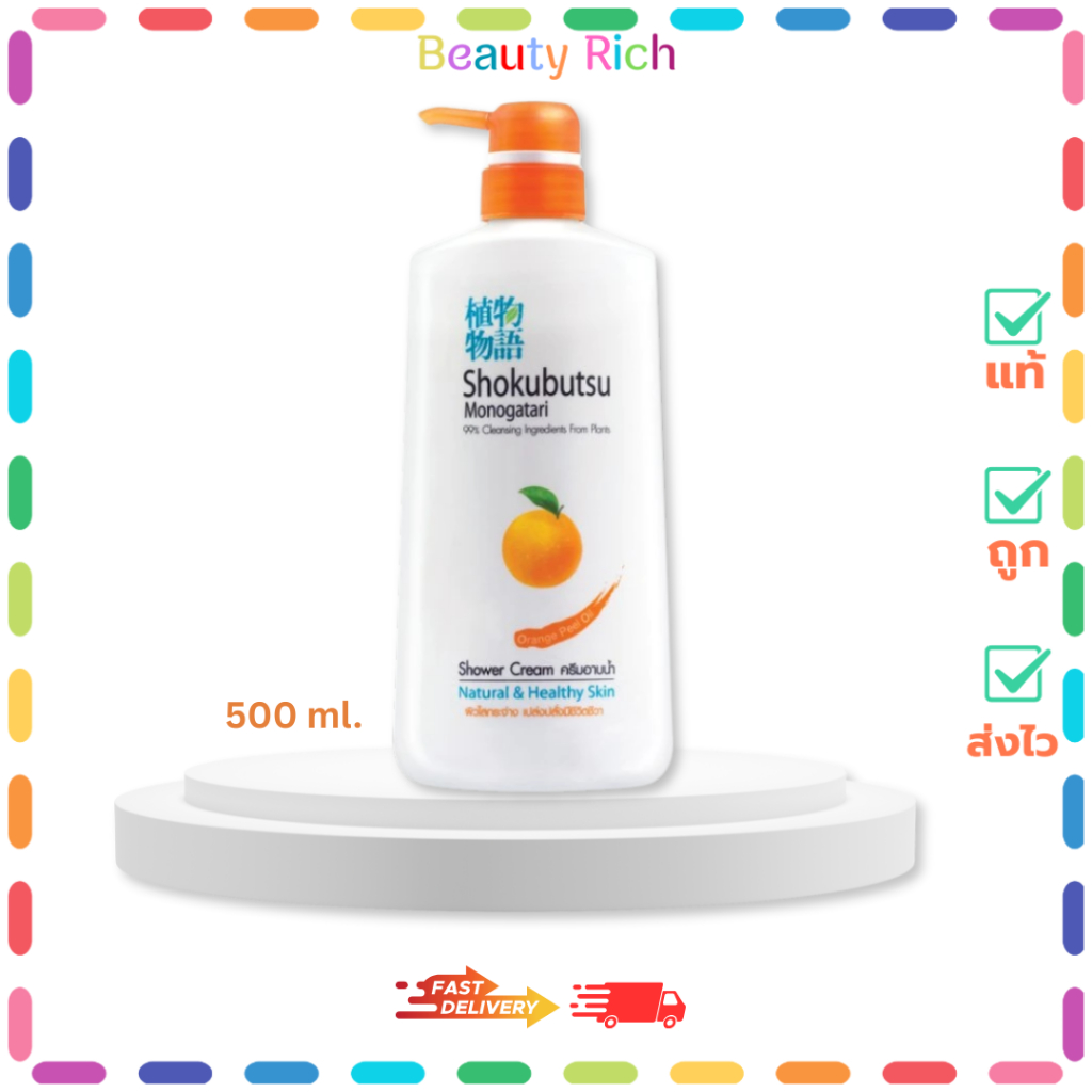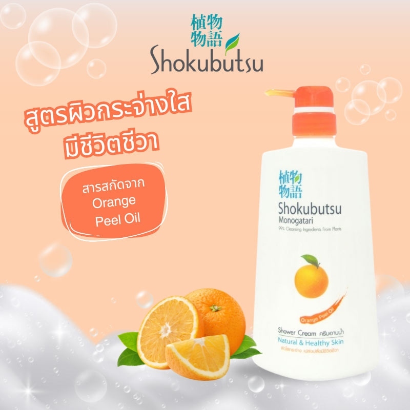 (1 ขวด) Shokubutsu Monogatari Orange Peel Oil (สีส้ม) ครีมอาบน้ำ โชกุบุสซึ (500 ml.)
