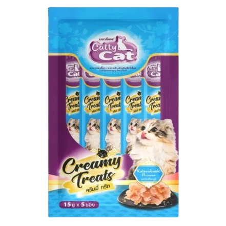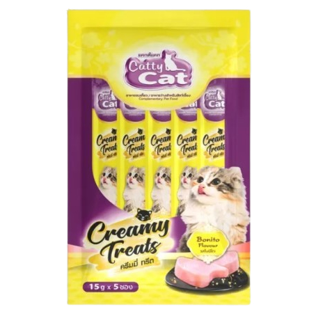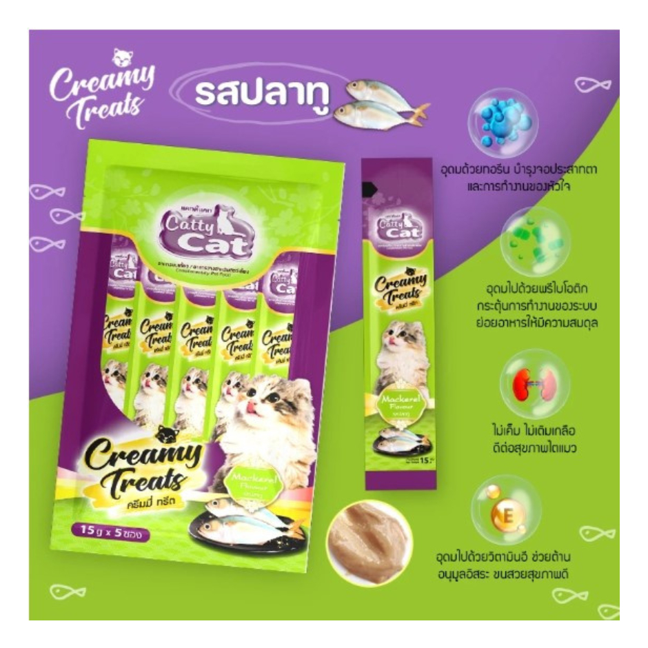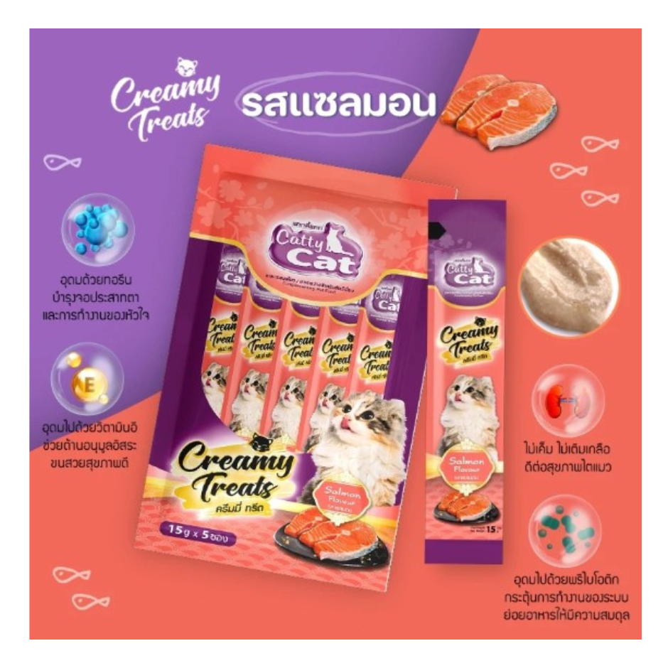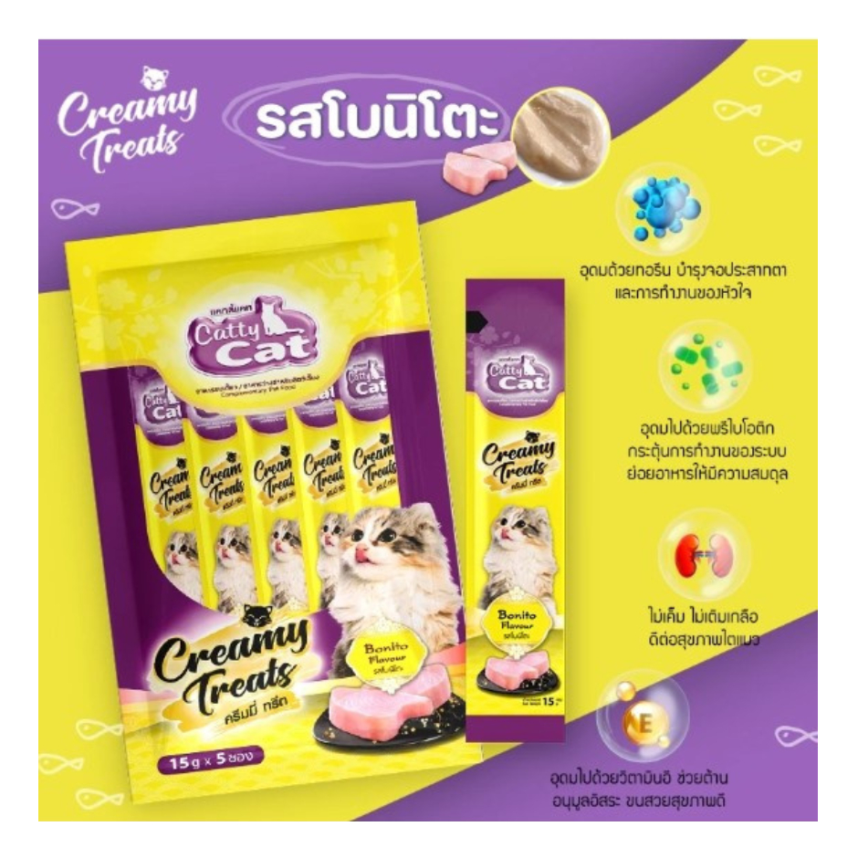 แคทตี้แคท Catty Cat ขนมแมวเลีย เสริมวิตามิน “ไม่เค็ม ไม่เติมเกลือ” ขนาด 15gx 5 ซอง