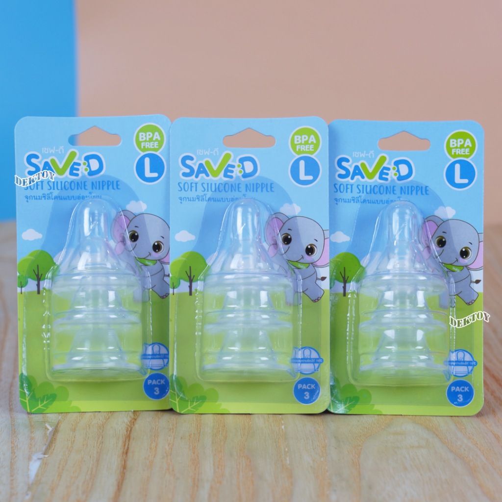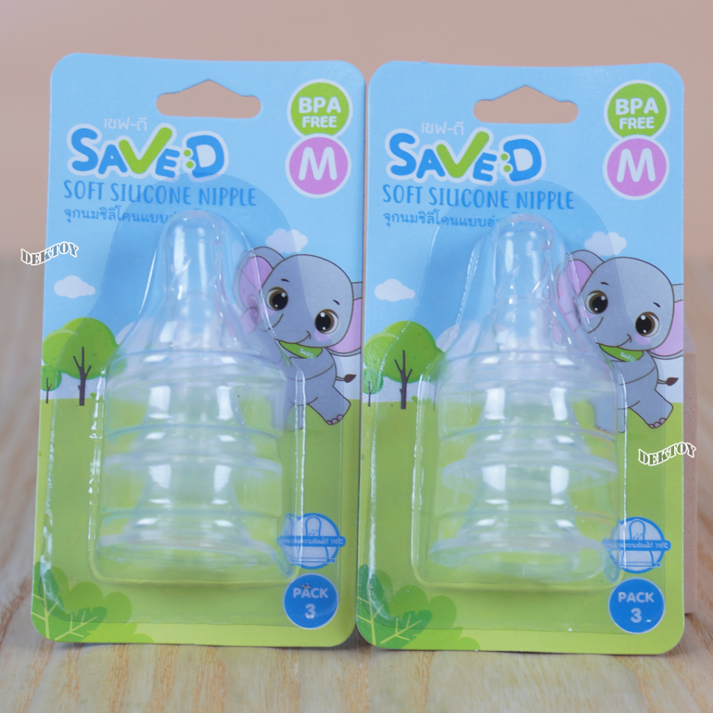 แพ็ค3 Save D จุกนมซิลิโคนแบบอ่อนโยน จุกนุ่ม ดูดง่าย แพ็ค 3 ชิ้น (S M L)